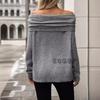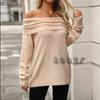 Otoño e invierno 2024 Amazon nuevo suéter sexy suelto con cuello de pila de color sólido con hombros descubiertos suéter de manga larga europeo y americano para mujeres