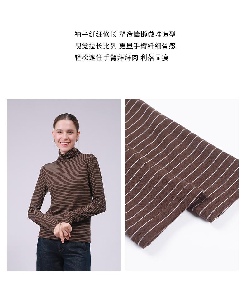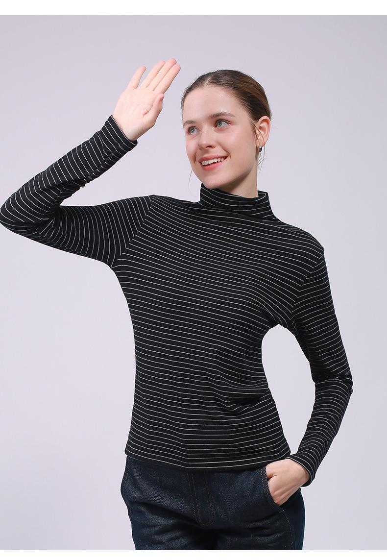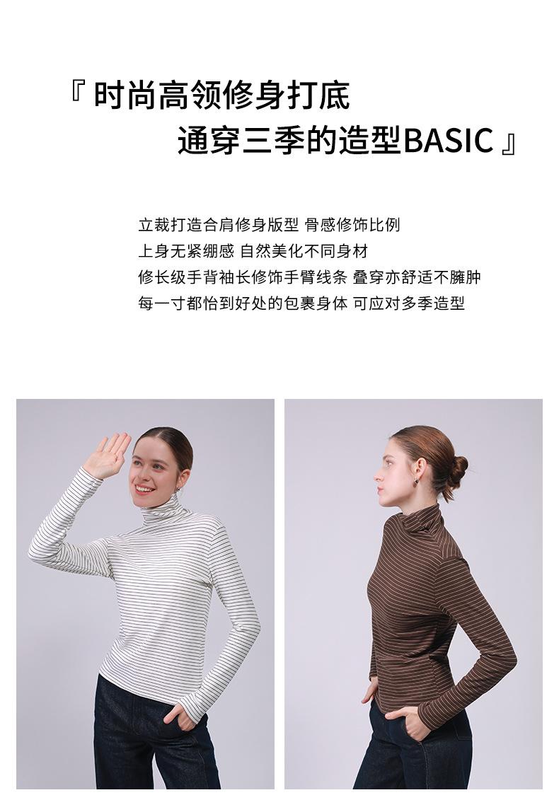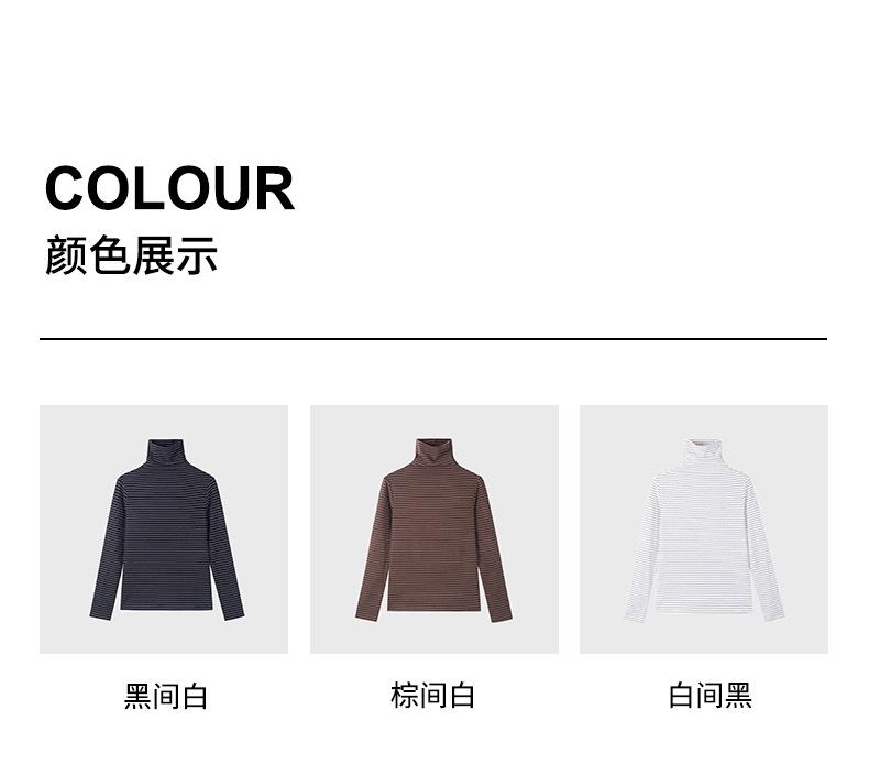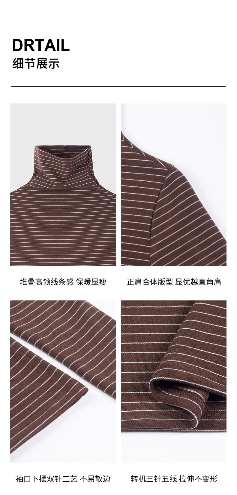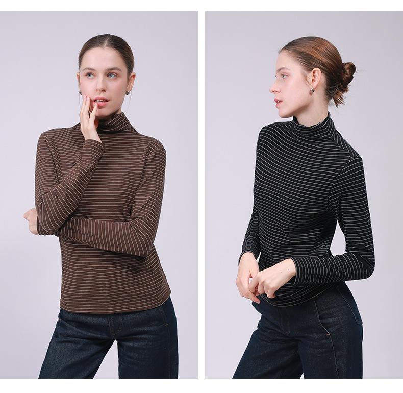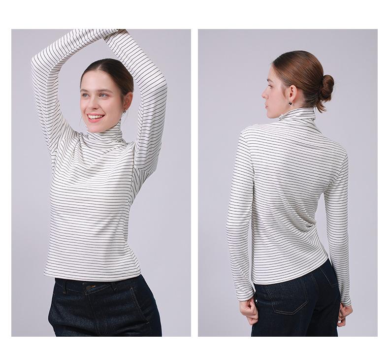 Top de Cuello Alto Versátil y a la Moda de Corte Ajustado con Cuello Acanalado para Otoño e Invierno, Camiseta Básica de Cuello Alto a Rayas para Mujer Mbh084