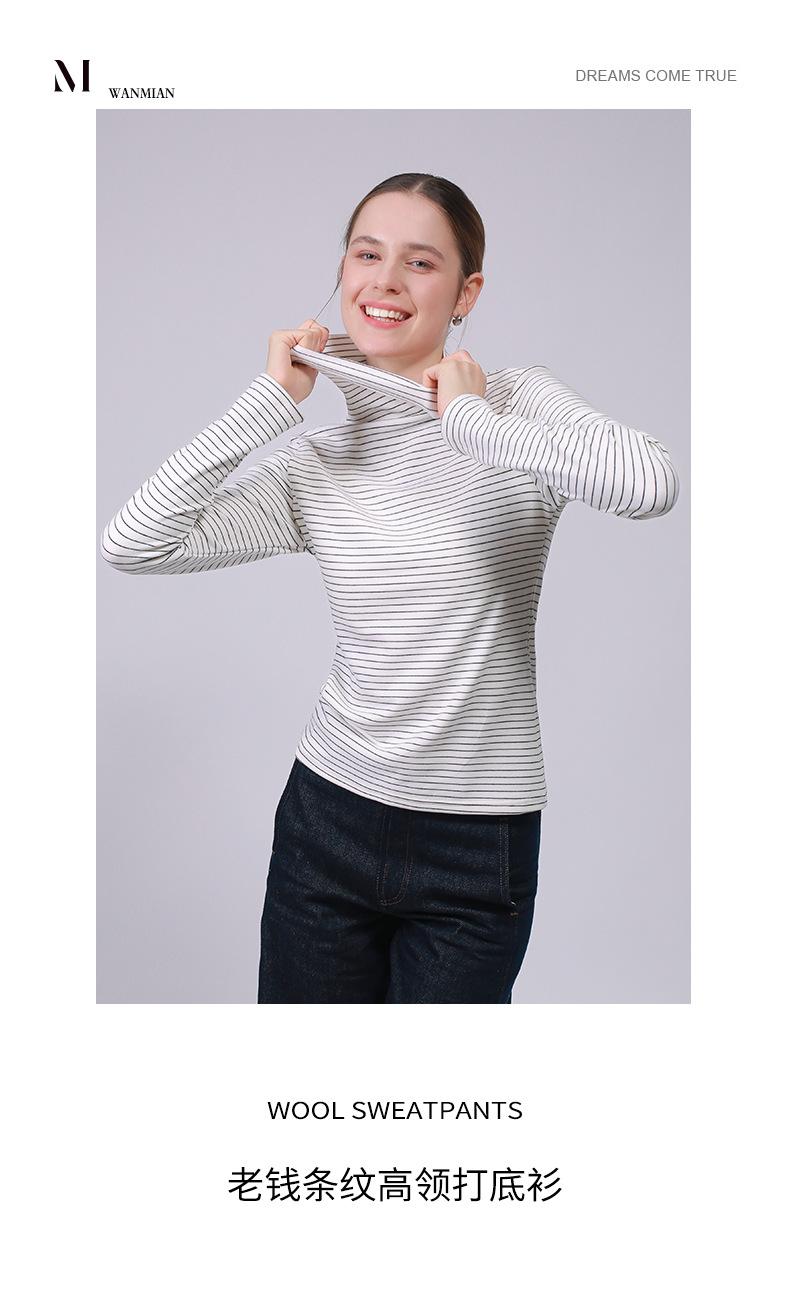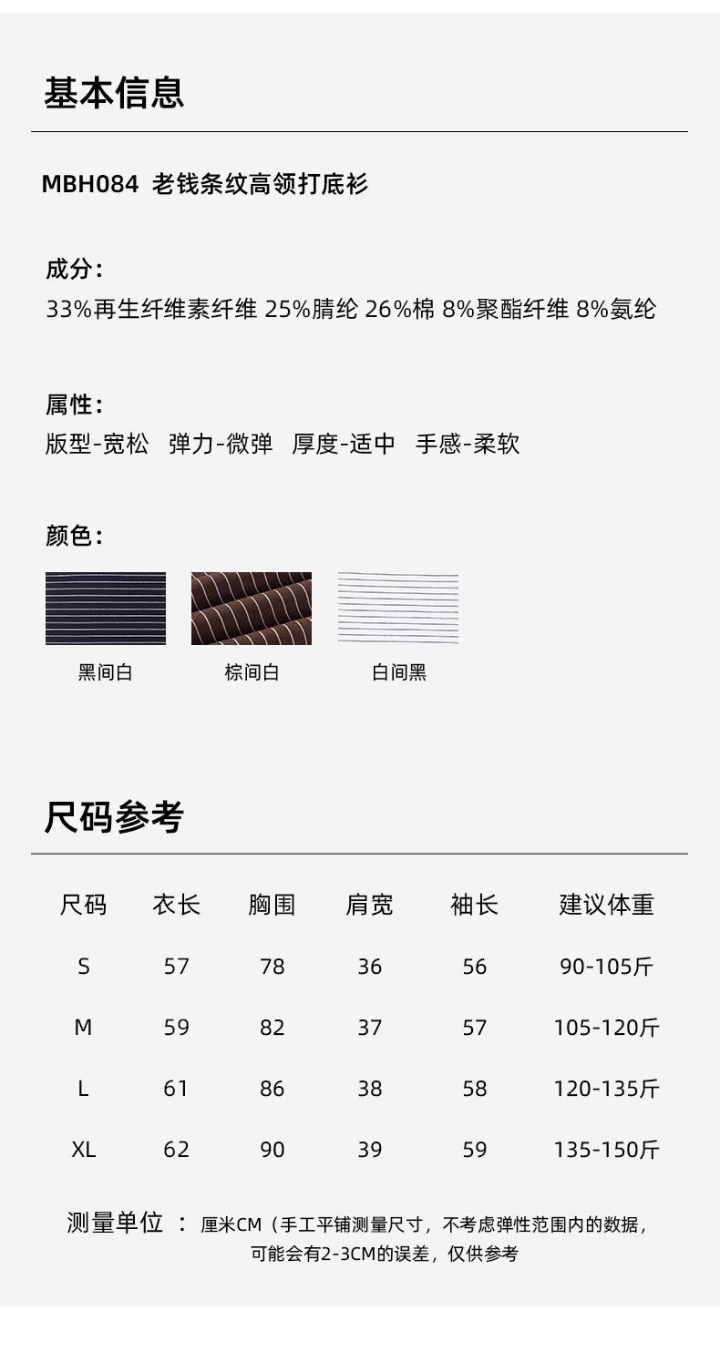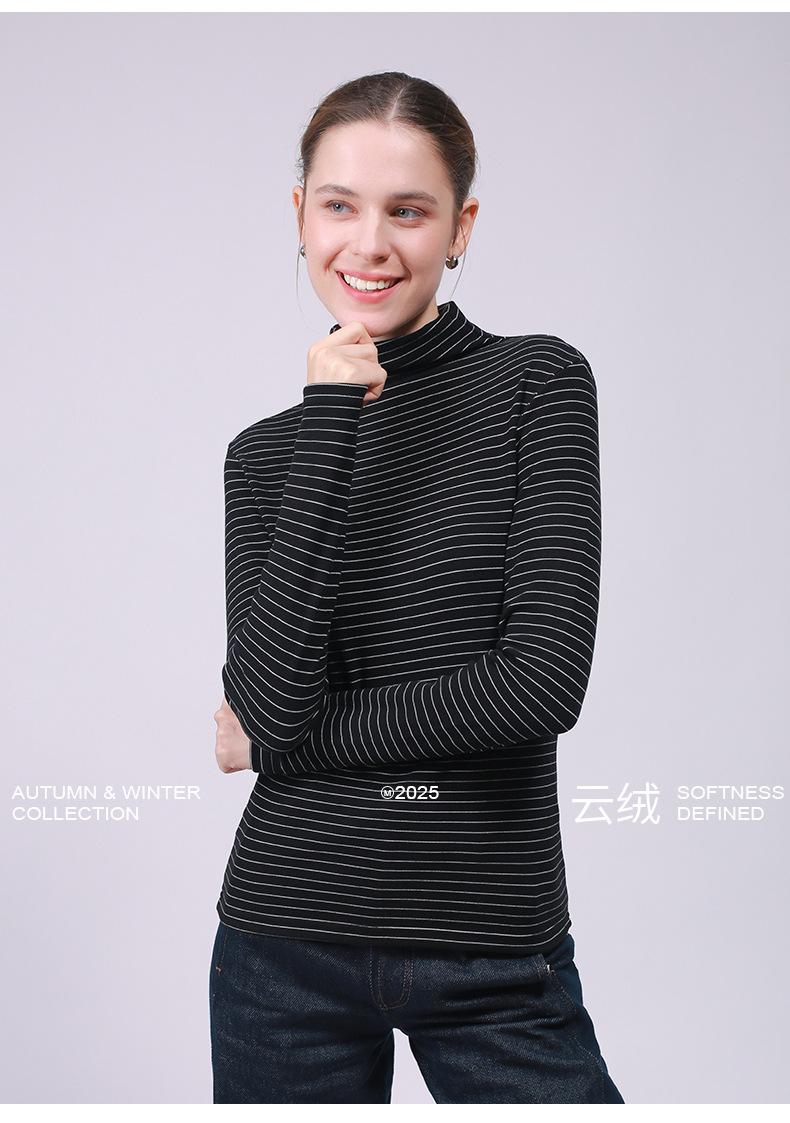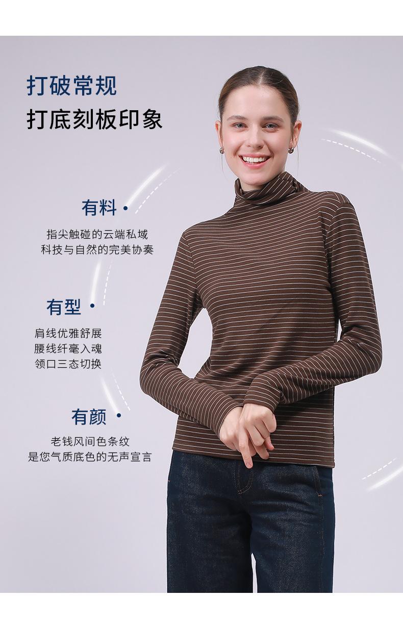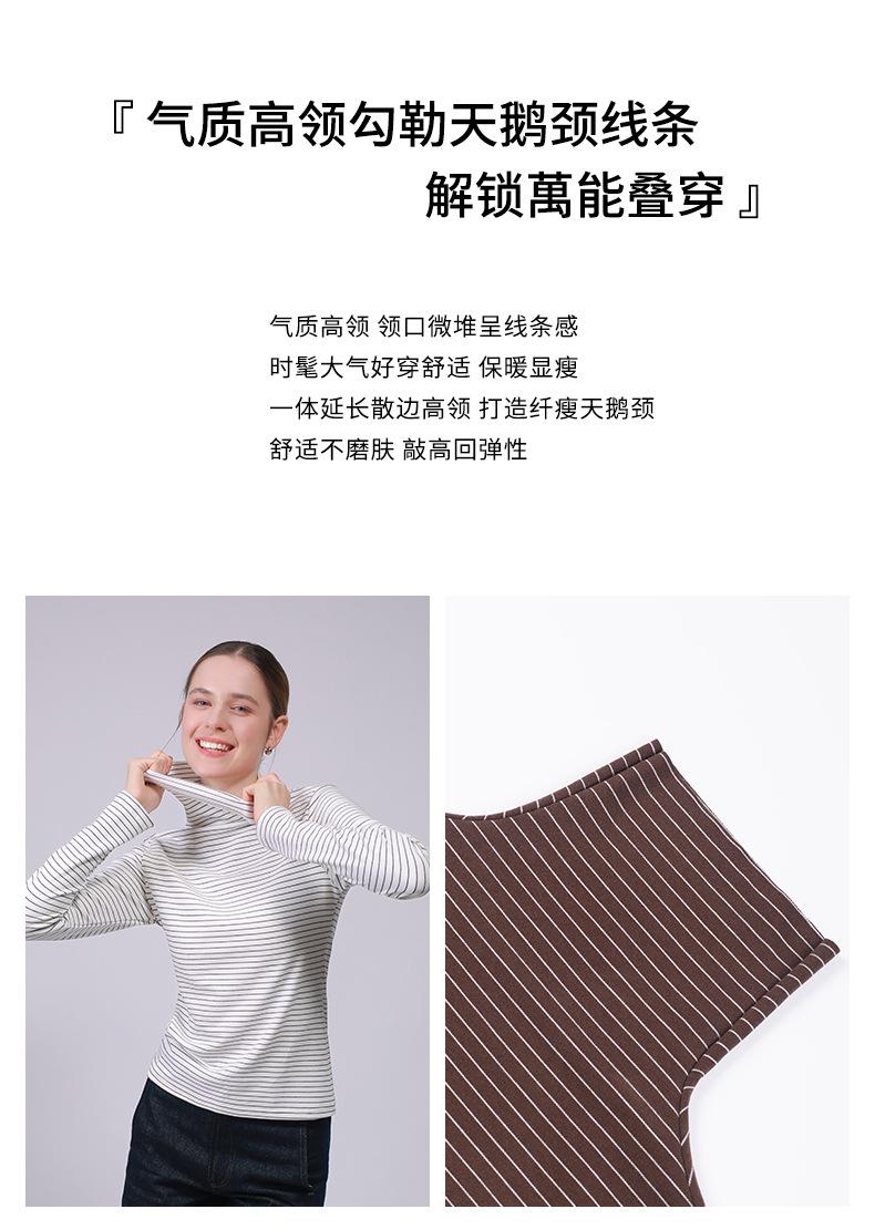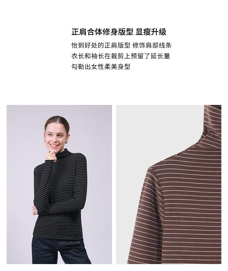Top de Cuello Alto Versátil y a la Moda de Corte Ajustado con Cuello Acanalado para Otoño e Invierno, Camiseta Básica de Cuello Alto a Rayas para Mujer Mbh084