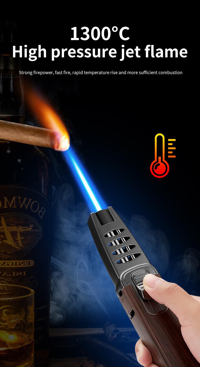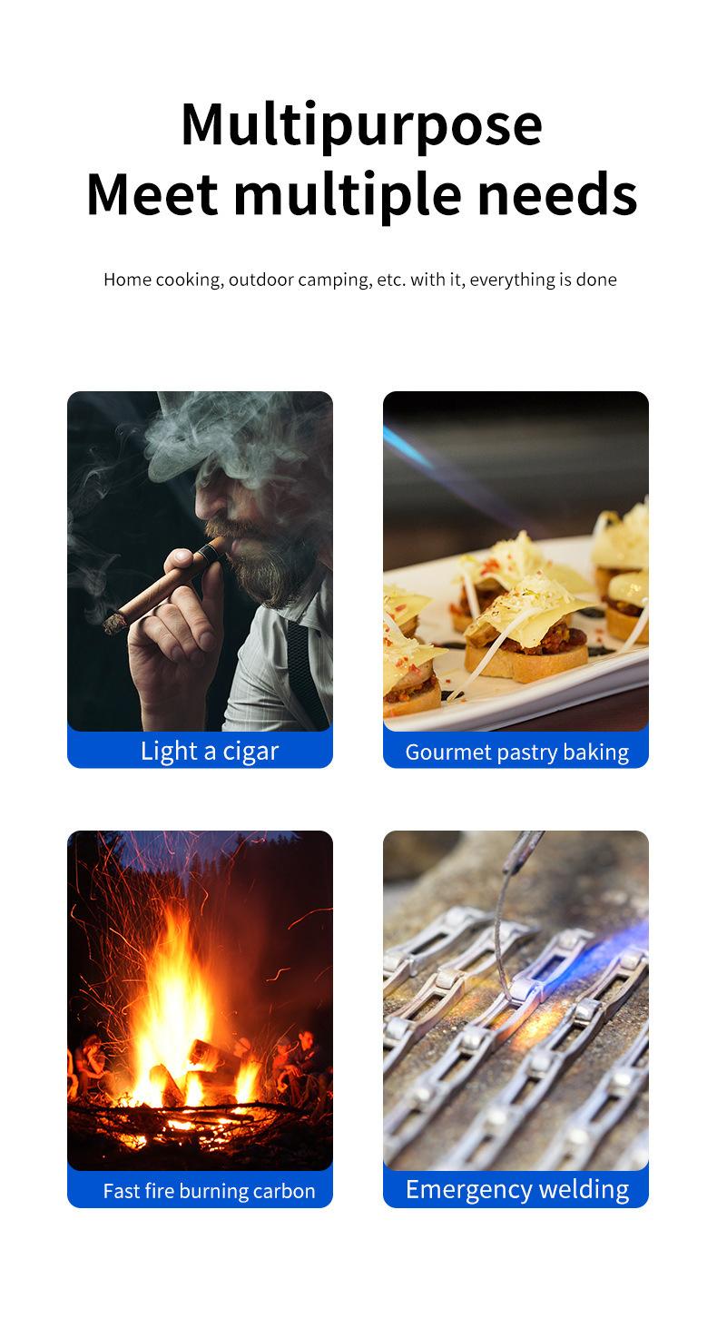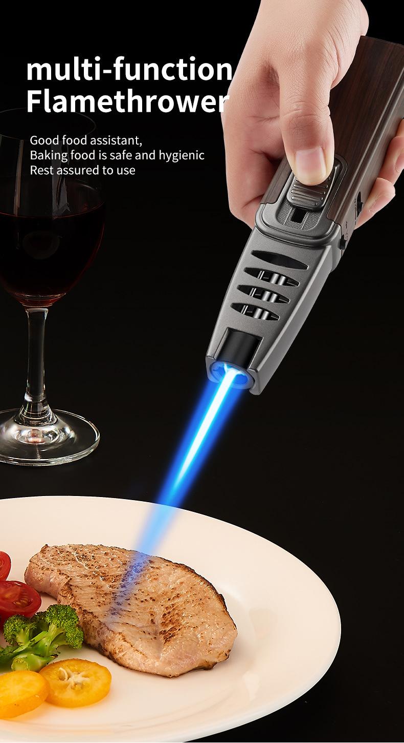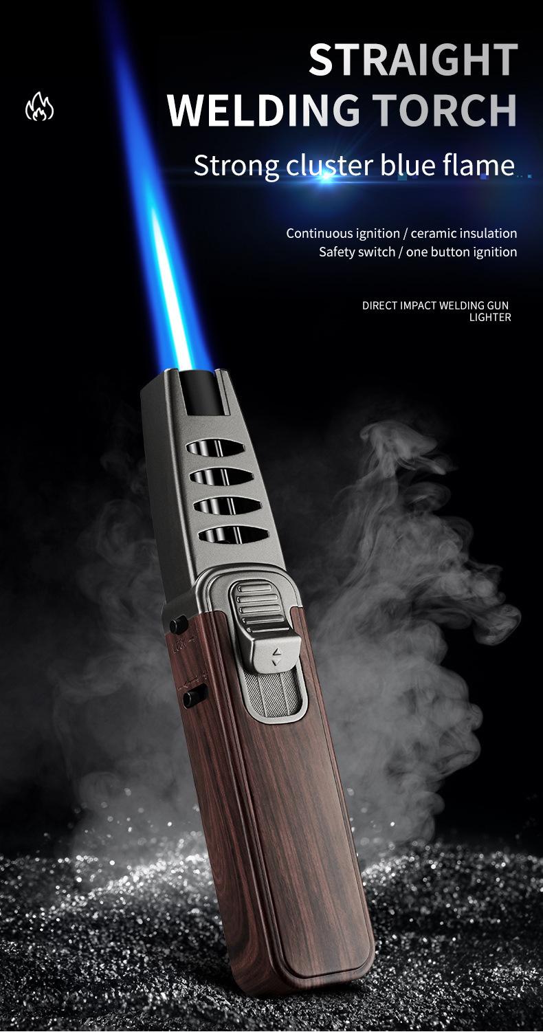 Pistola de soldadura de gran tamaño, a prueba de viento, directa, para cocina, horneado, barbacoa, punto de carbono, llama azul, encendedor de cigarros inflable de metal, venta al por mayor