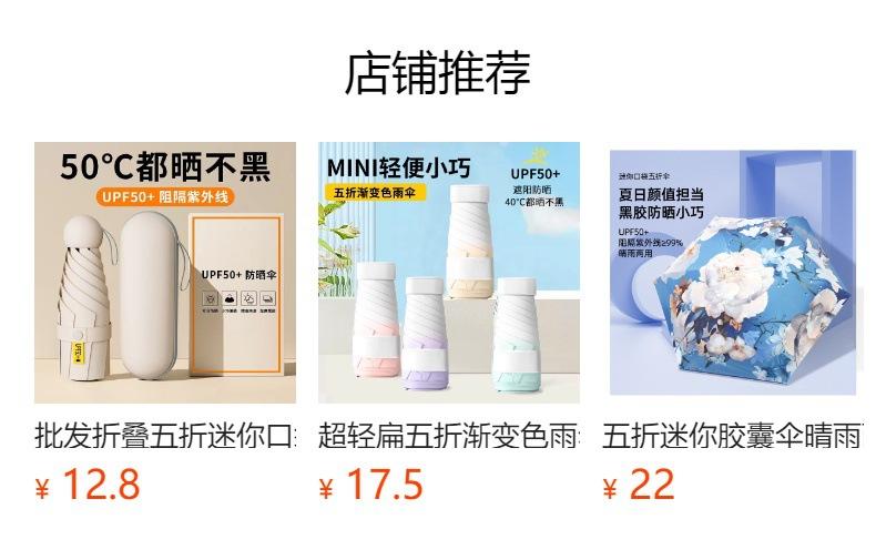 Paraguas plano de cinco pliegues para mujer, pequeño, portátil, con protección solar UV, plegable, mini, de bolsillo, personalizado