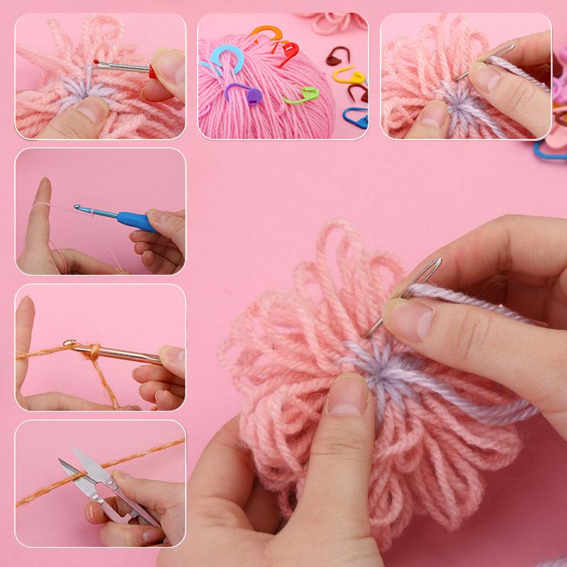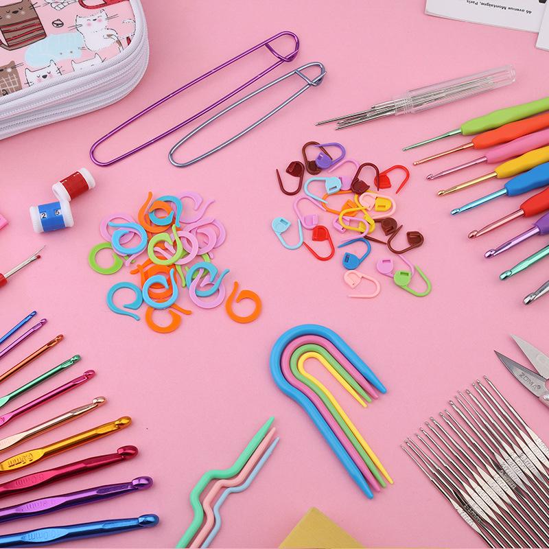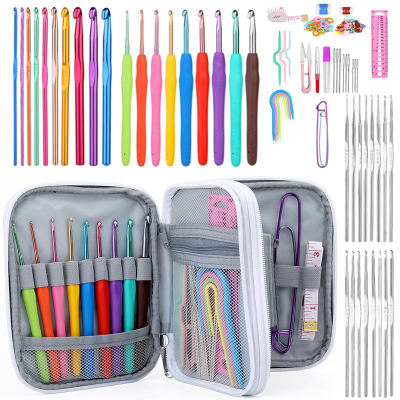 Kit de combinación de accesorios de tejido de alúmina y TPR con mango de goma para tejer, venta al por mayor de fábrica