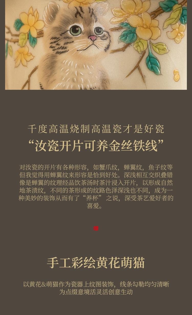 Royal yellow Ru kiln yellow flower cat_a pot of two cups