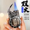 Encendedor inflable transparente de doble llama azul recta de alto valor, visible en el aire, para hombres, regalos empresariales de alta gama, venta al por mayor