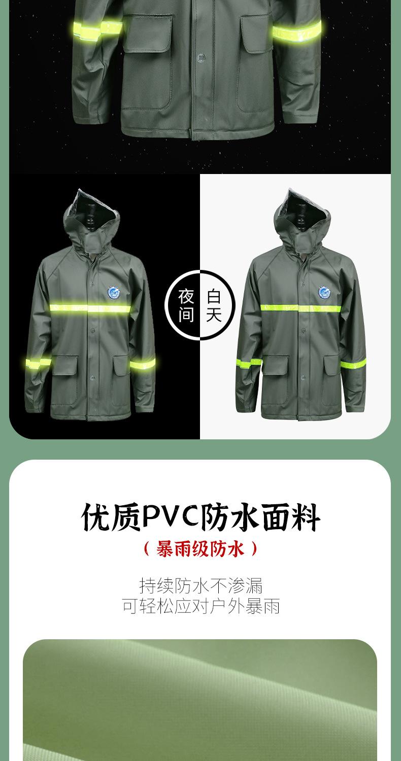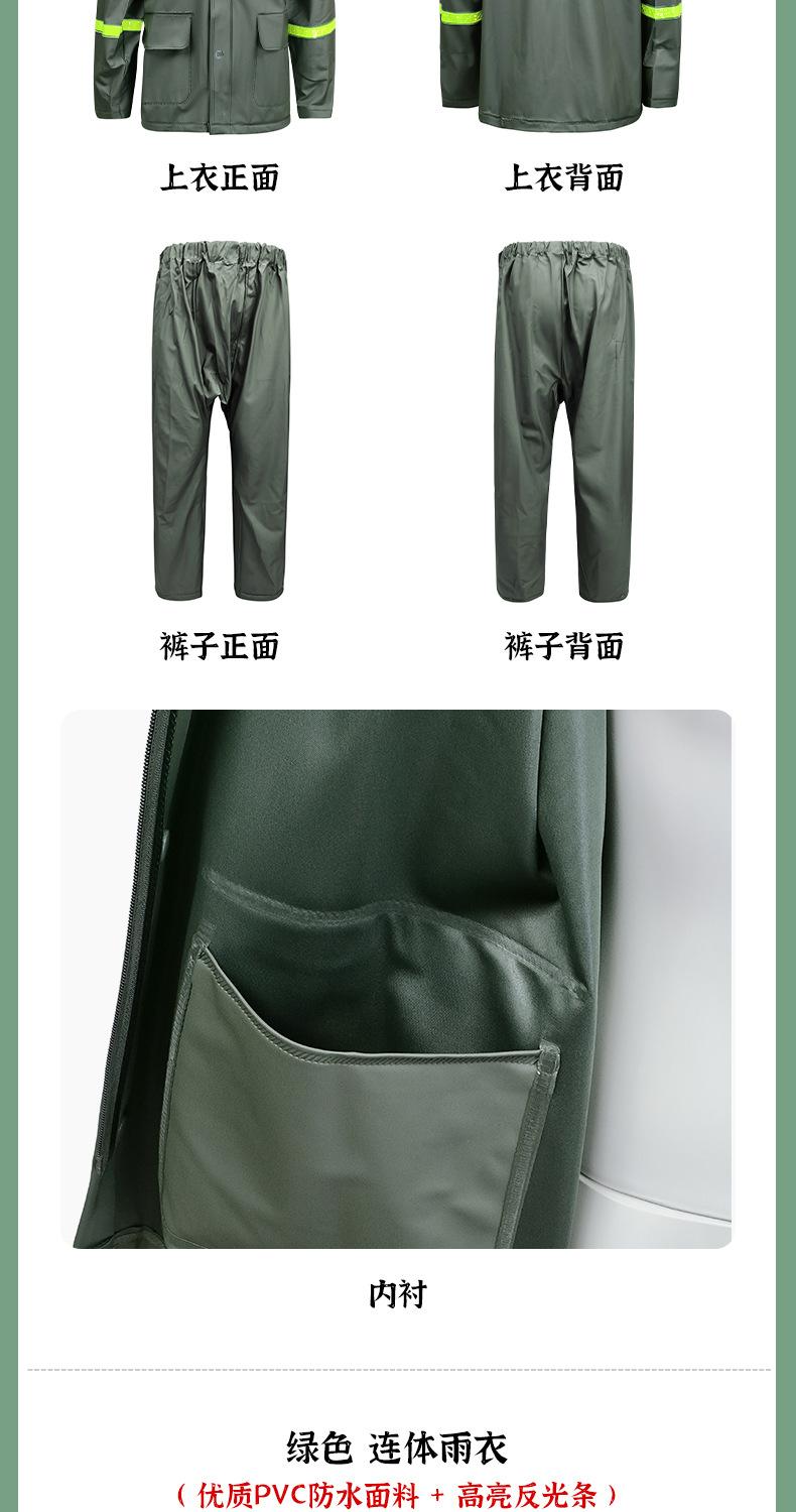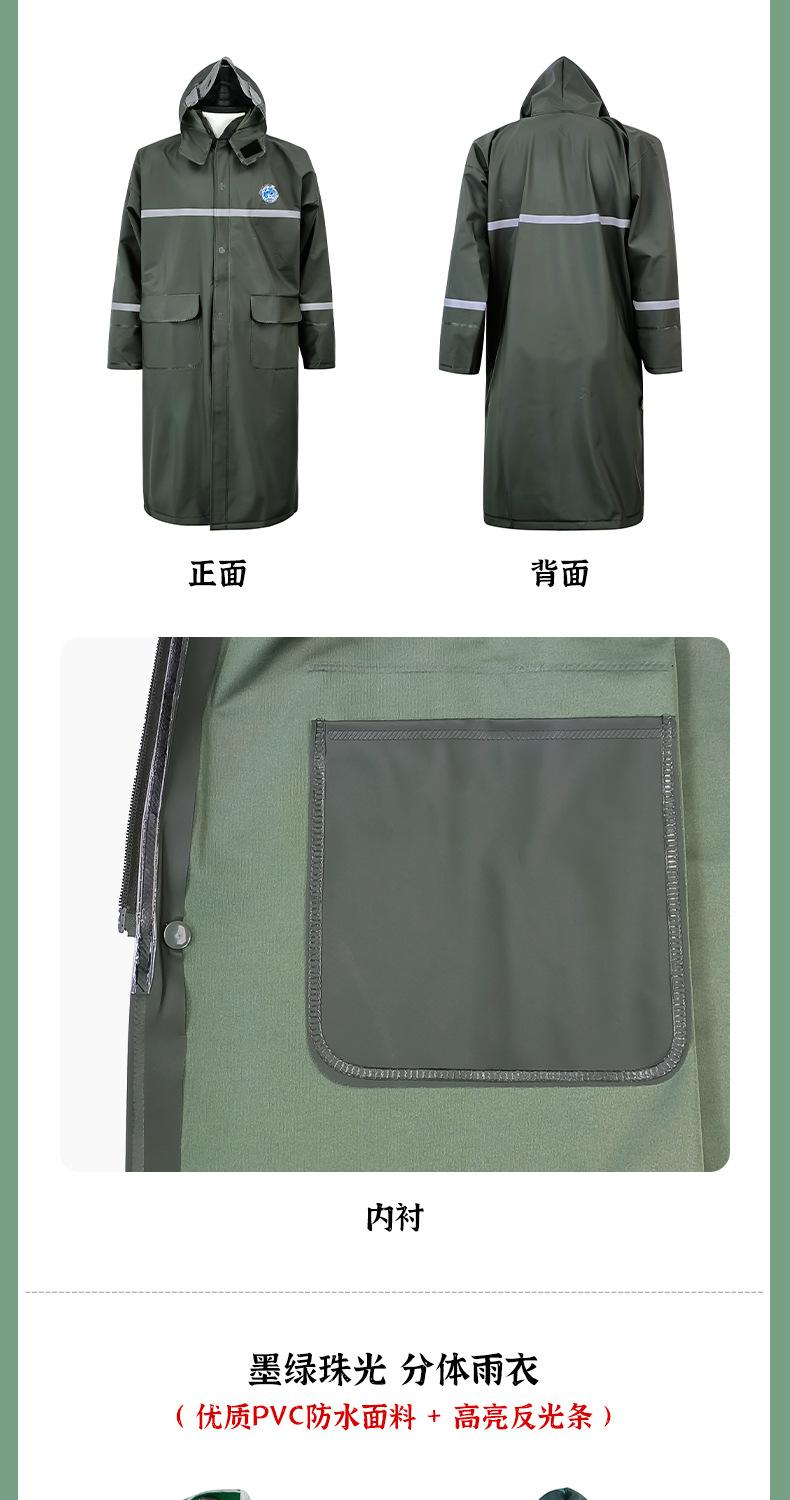Green reflective conjoined raincoat [4013]], Green Reflective Split Raincoat [4008]], Dark green reflective sp...