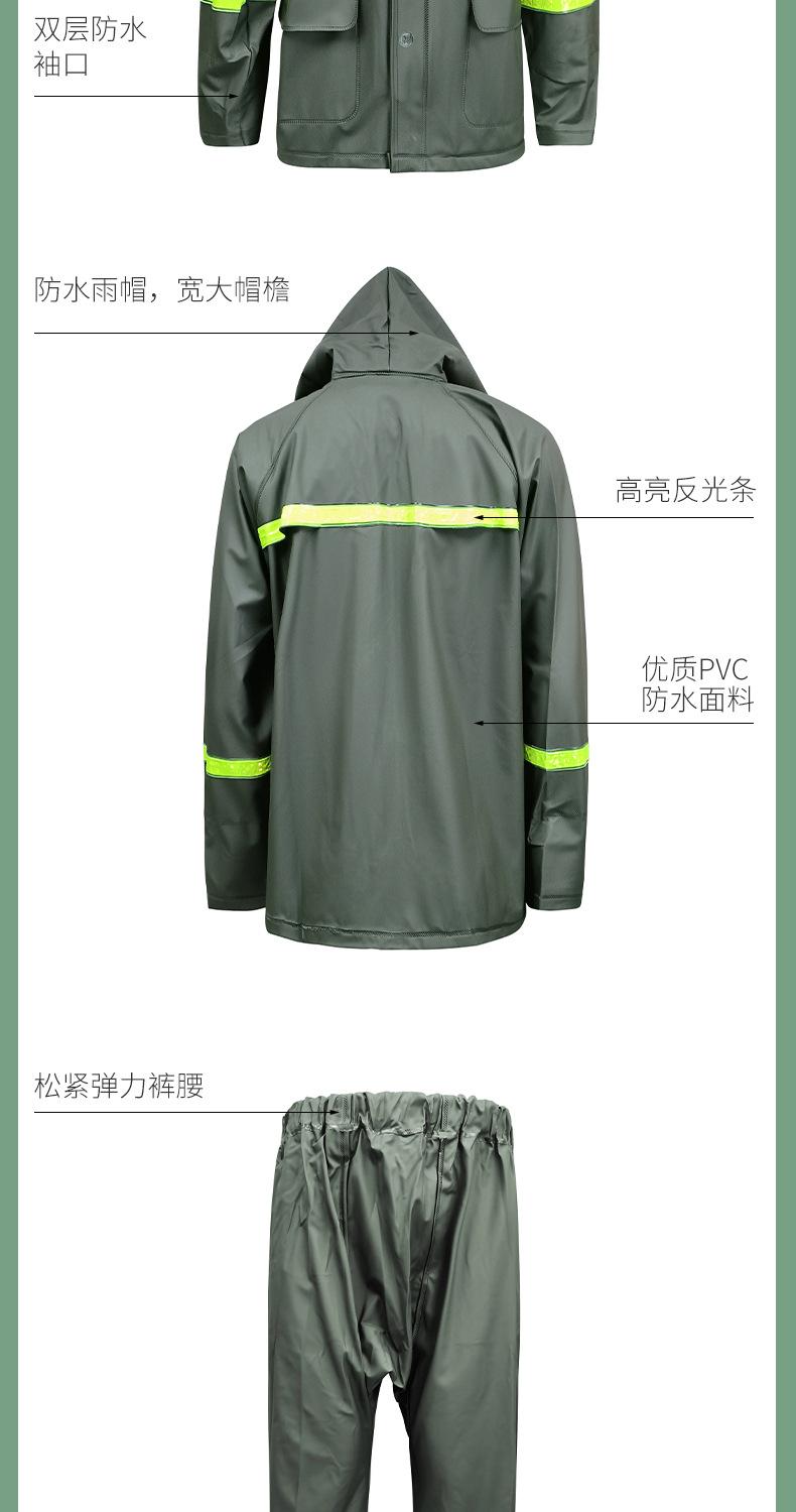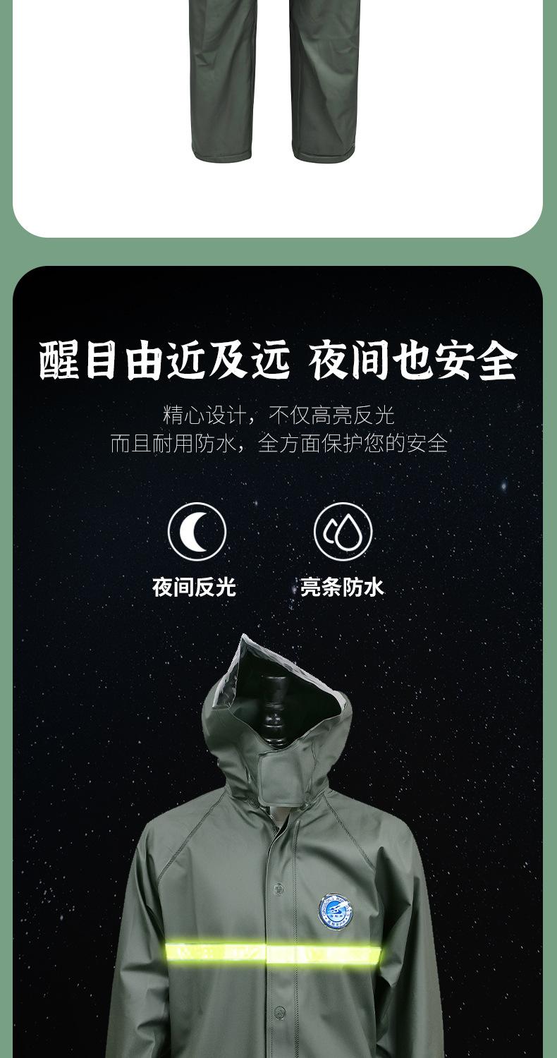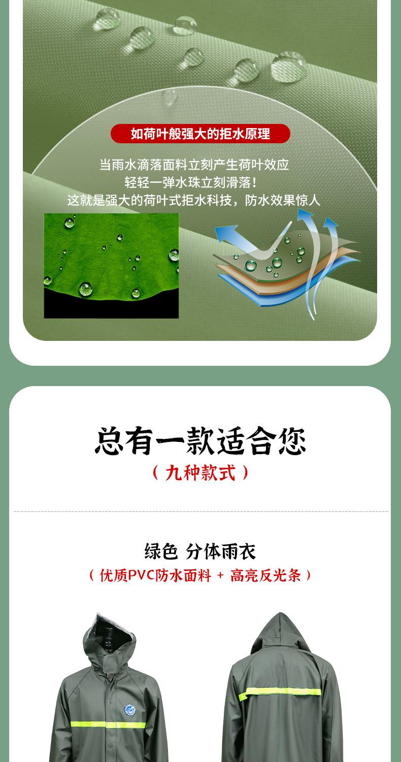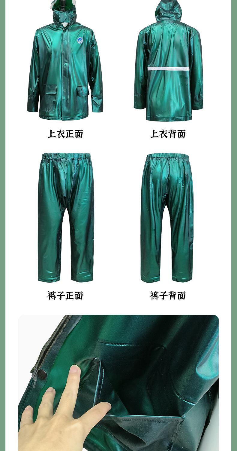 Green reflective conjoined raincoat [4013]], Green Reflective Split Raincoat [4008]], Dark green reflective sp...