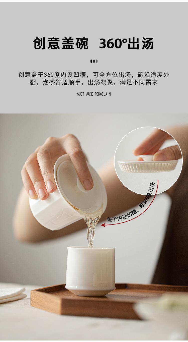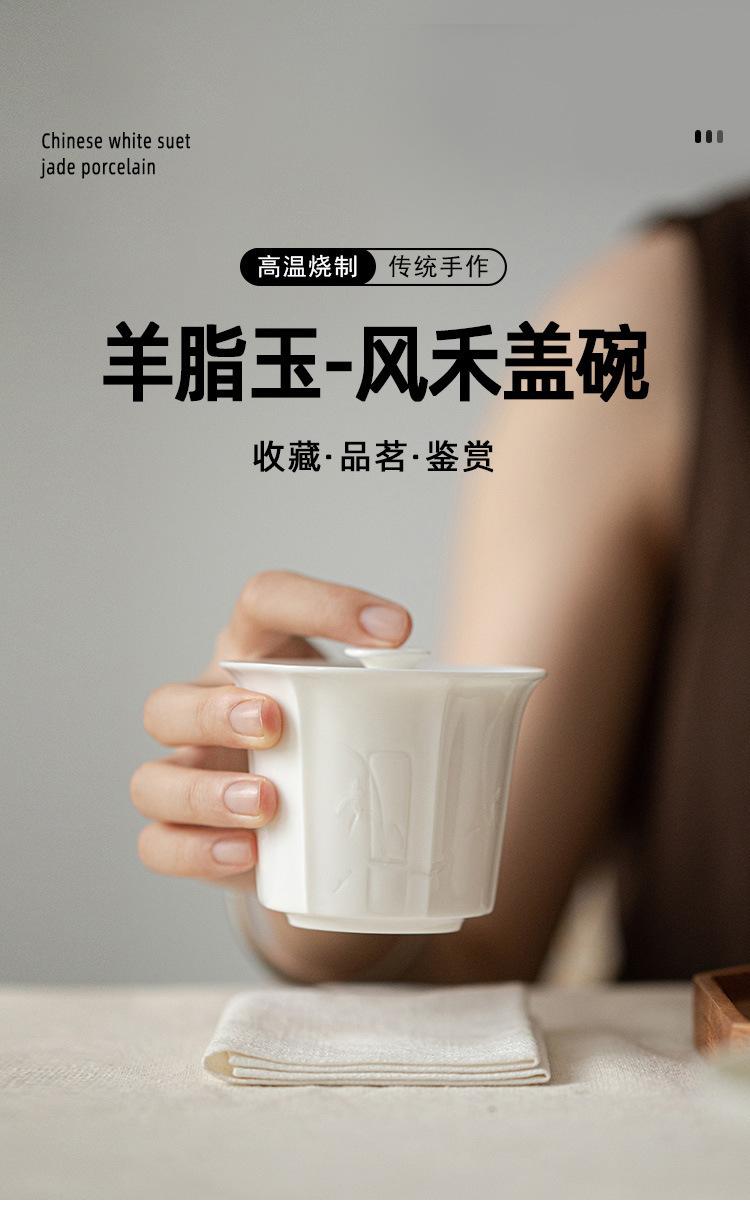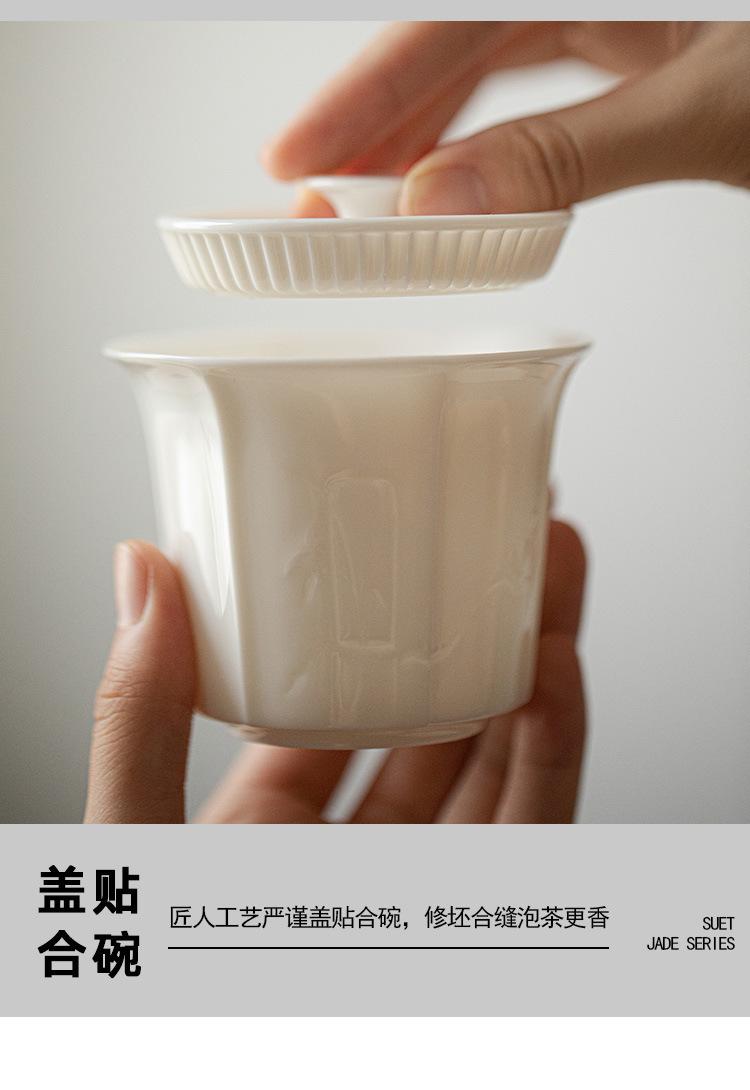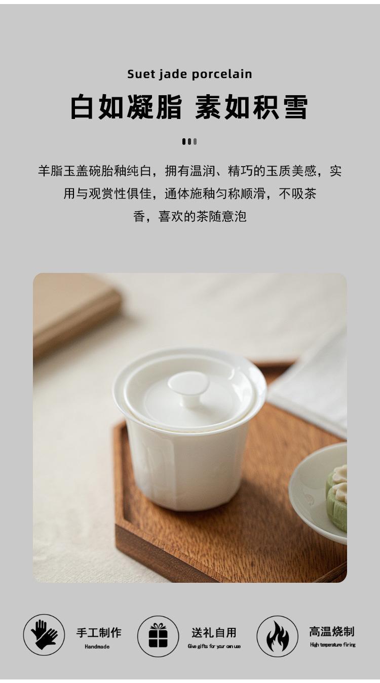 Cuenco de té con tapa de jade y grasa de oveja, taza de té individual con agua de 360 grados, cuenco grande de cerámica con tres tapas, juego de té que no se calienta