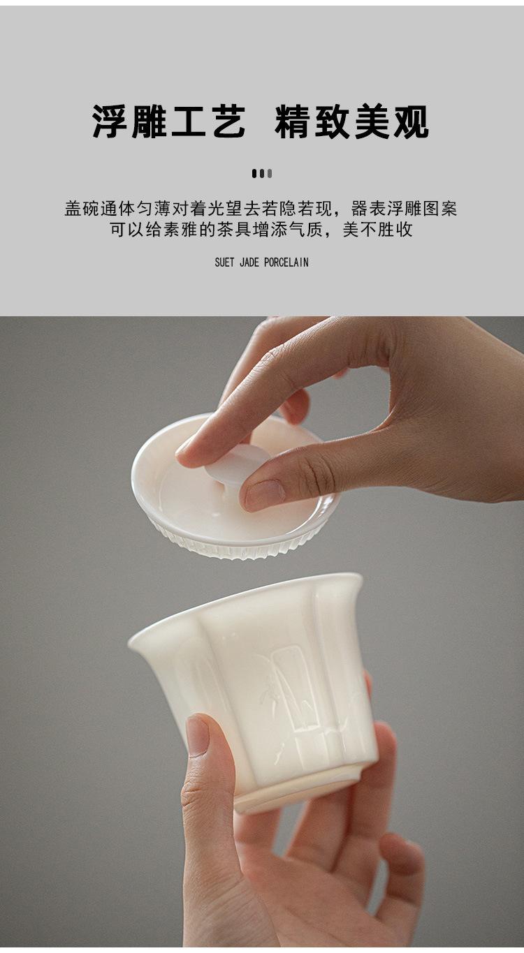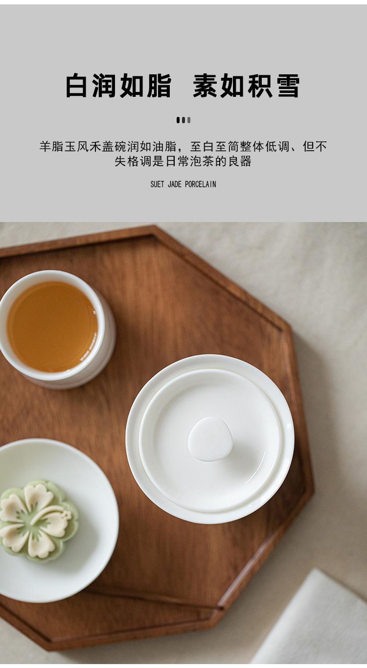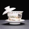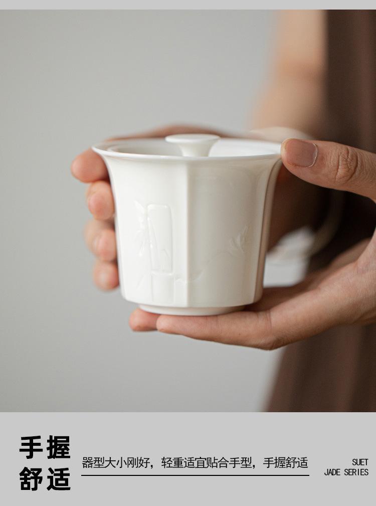 Cuenco de té con tapa de jade y grasa de oveja, taza de té individual con agua de 360 grados, cuenco grande de cerámica con tres tapas, juego de té que no se calienta