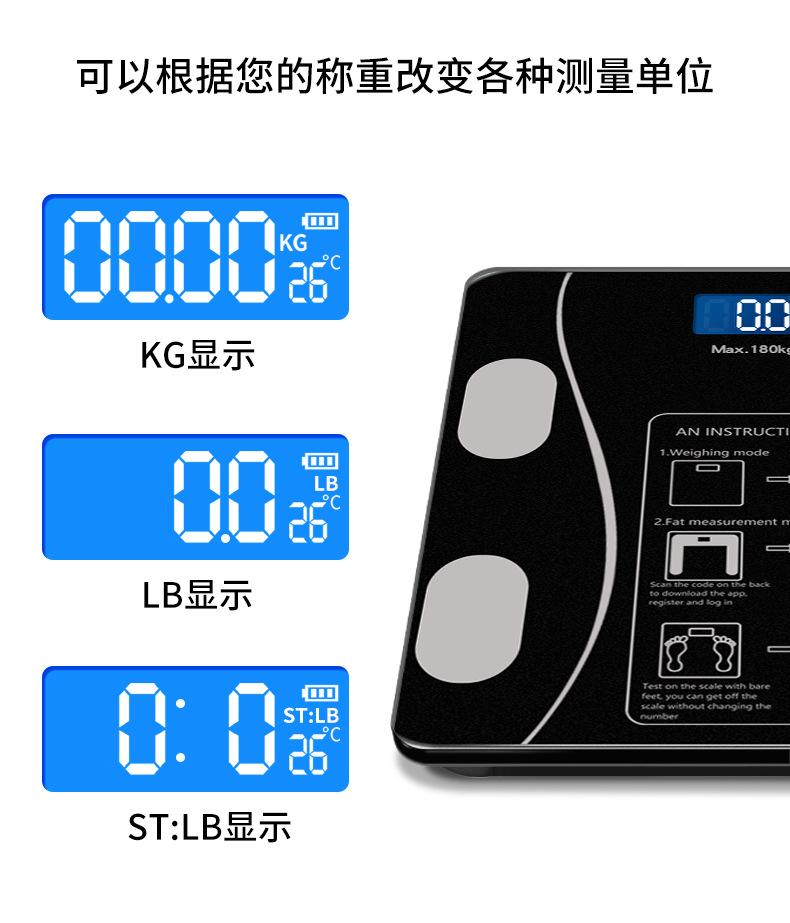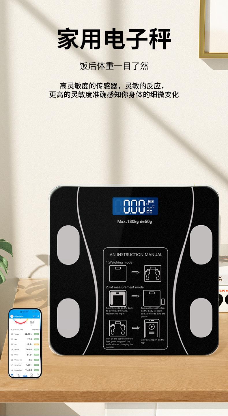 Báscula de grasa corporal inteligente con Bluetooth para venta al por mayor transfronteriza. Báscula de grasa corporal inteligente con Bluetooth para el hogar.