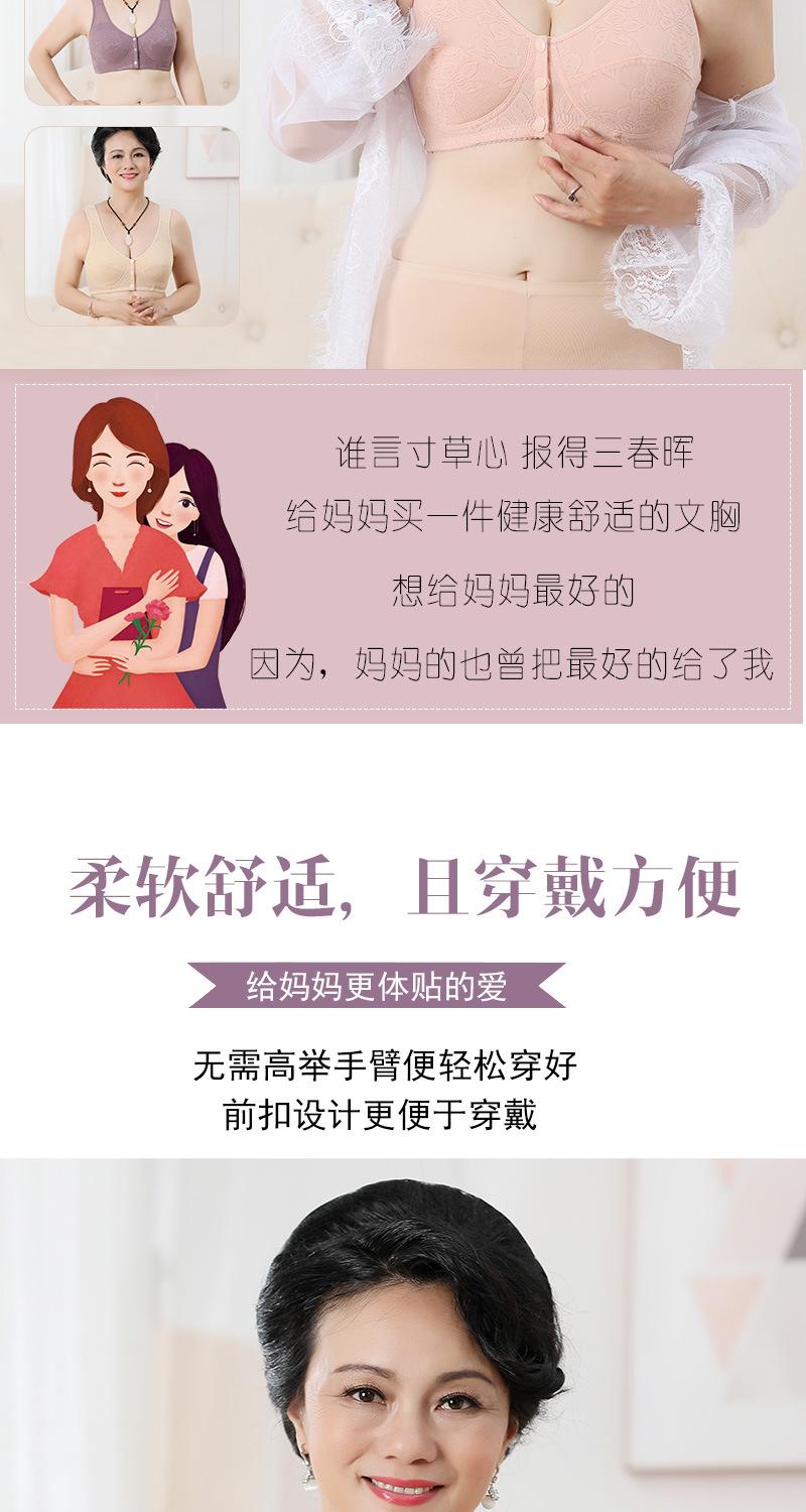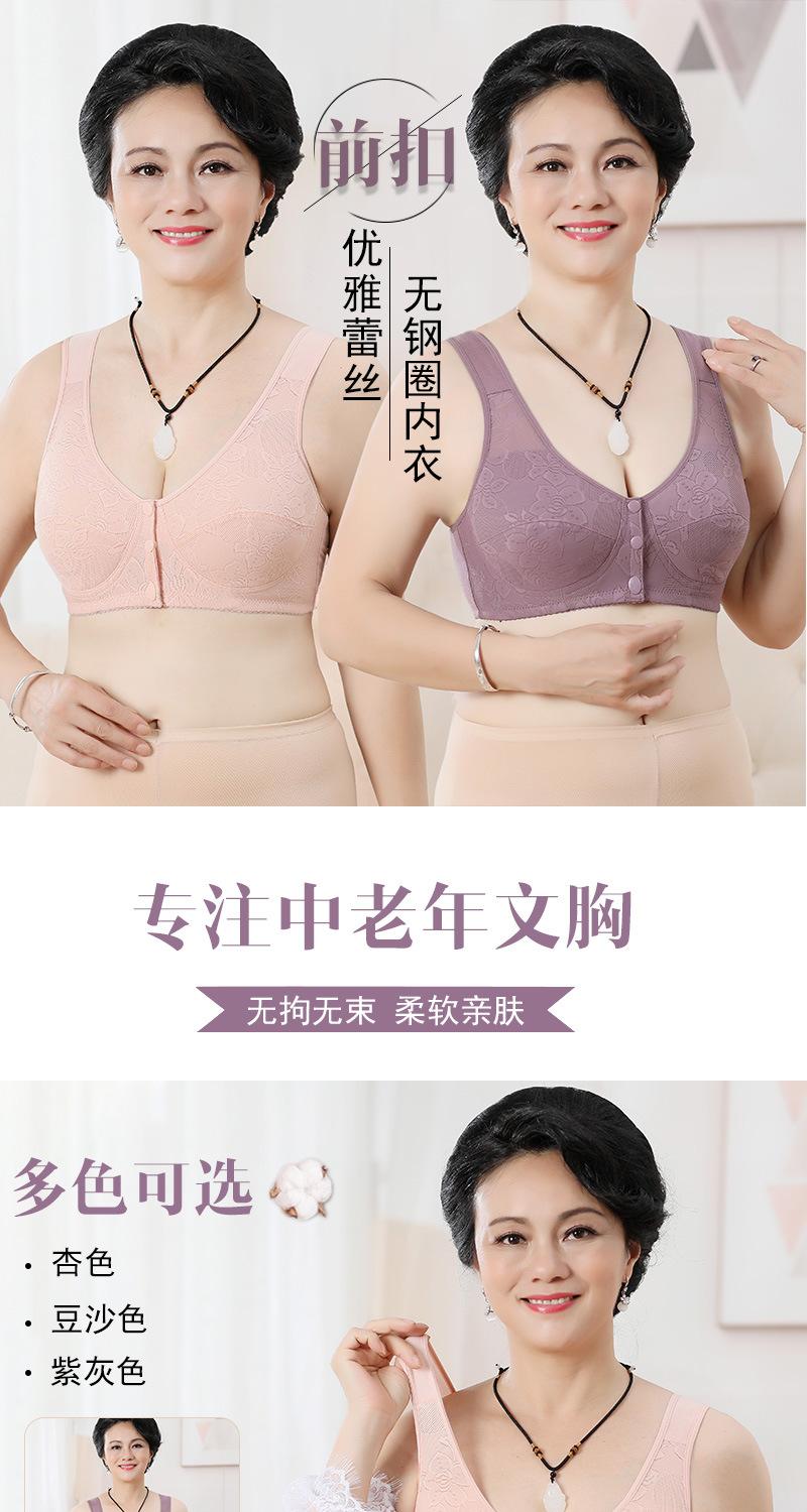 Nuevo Estilo Chaleco Jacquard de Algodón para Mediana Edad y Ancianas Ropa Interior con Botones Delanteros Copa de Encaje Talla Grande Sujetador Sin Varillas