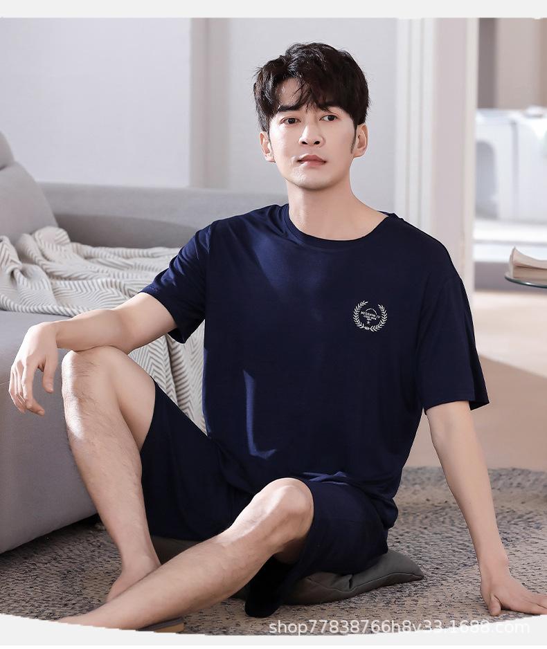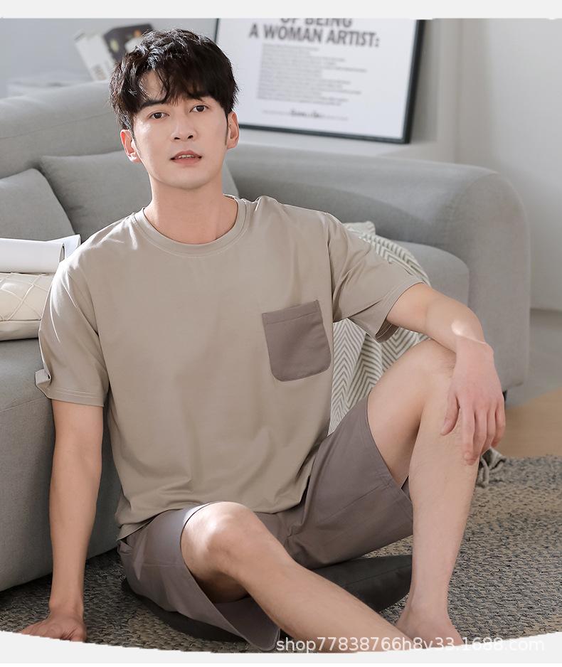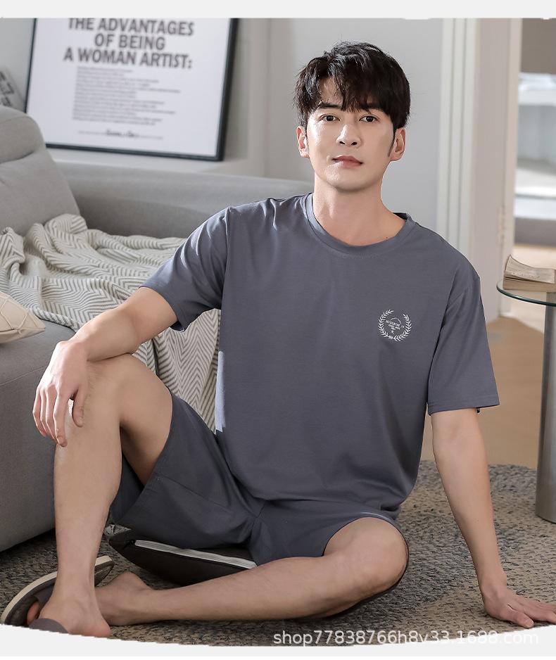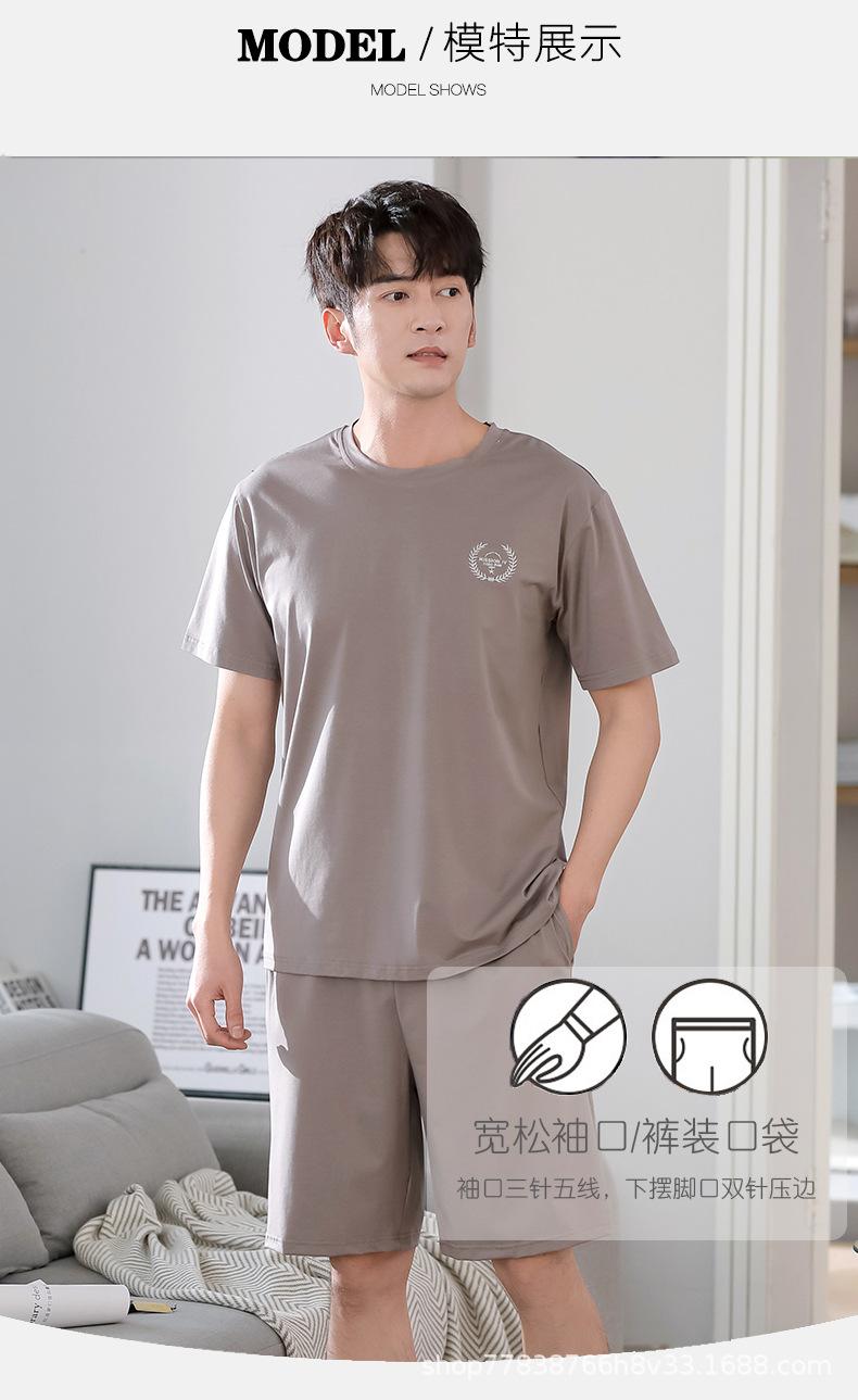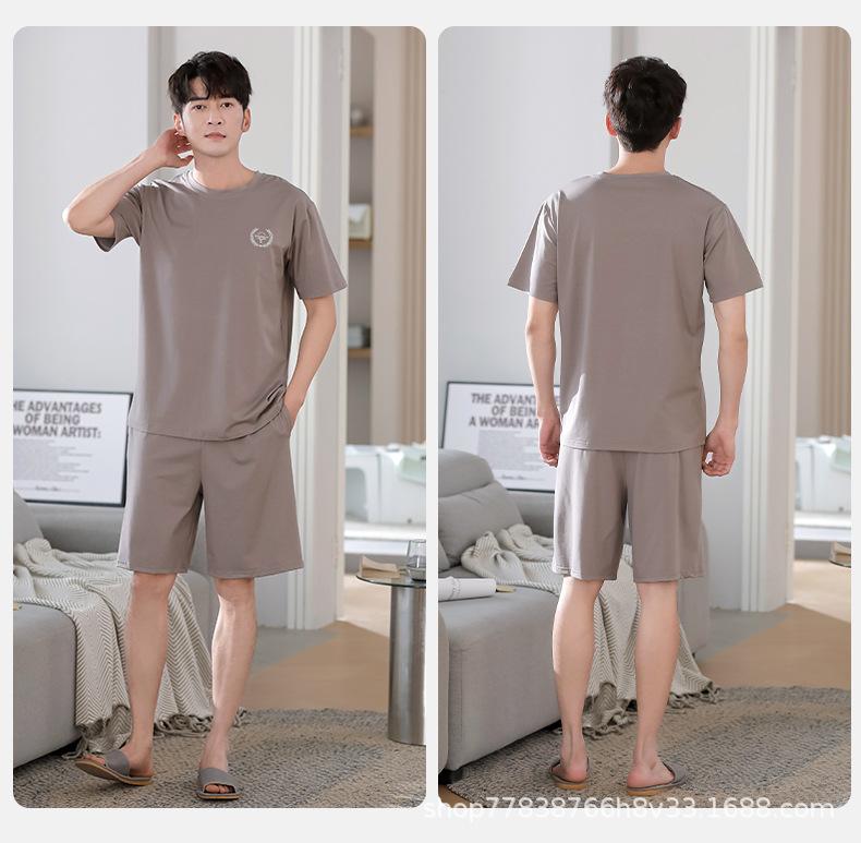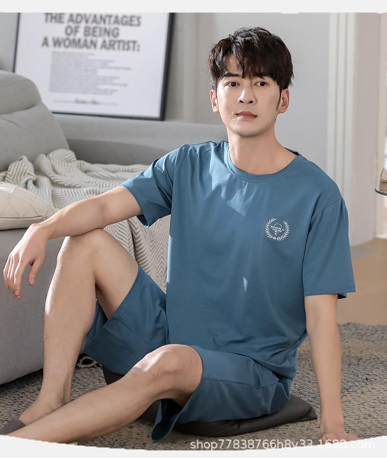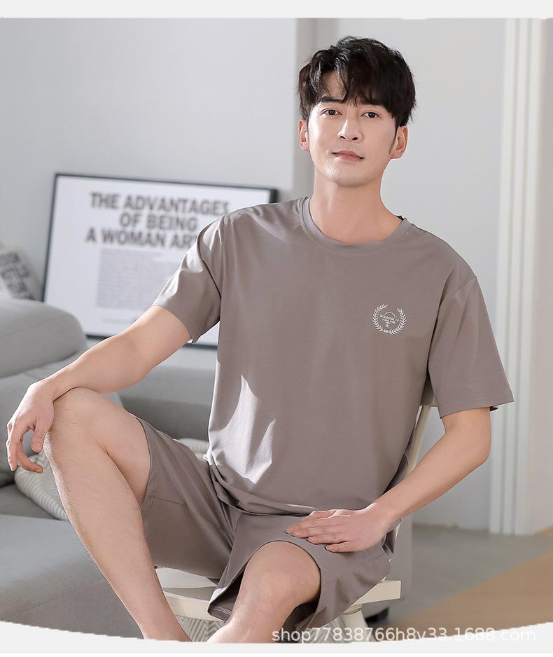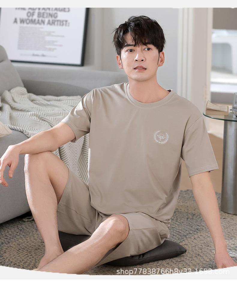 Pijama de verano para hombre, de manga corta, con cuello redondo, informal, para estar en casa, sencillo y fino.