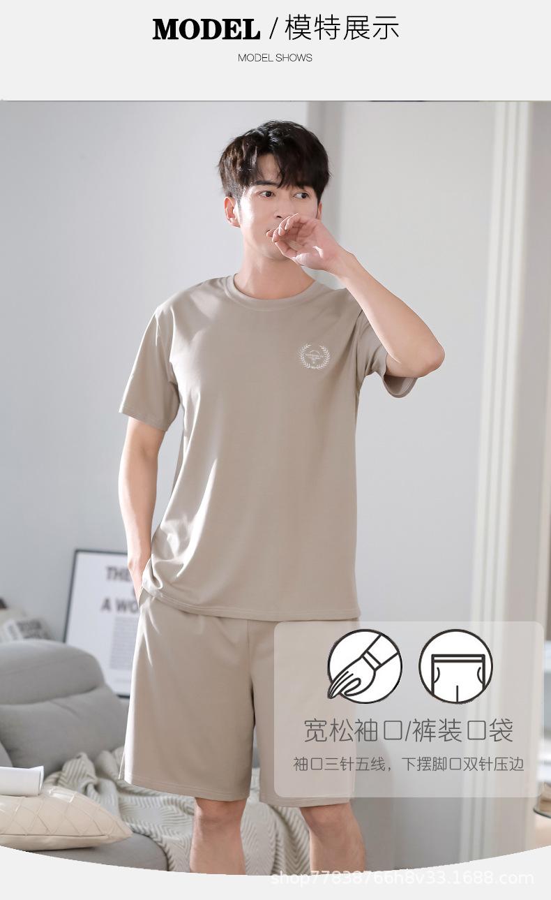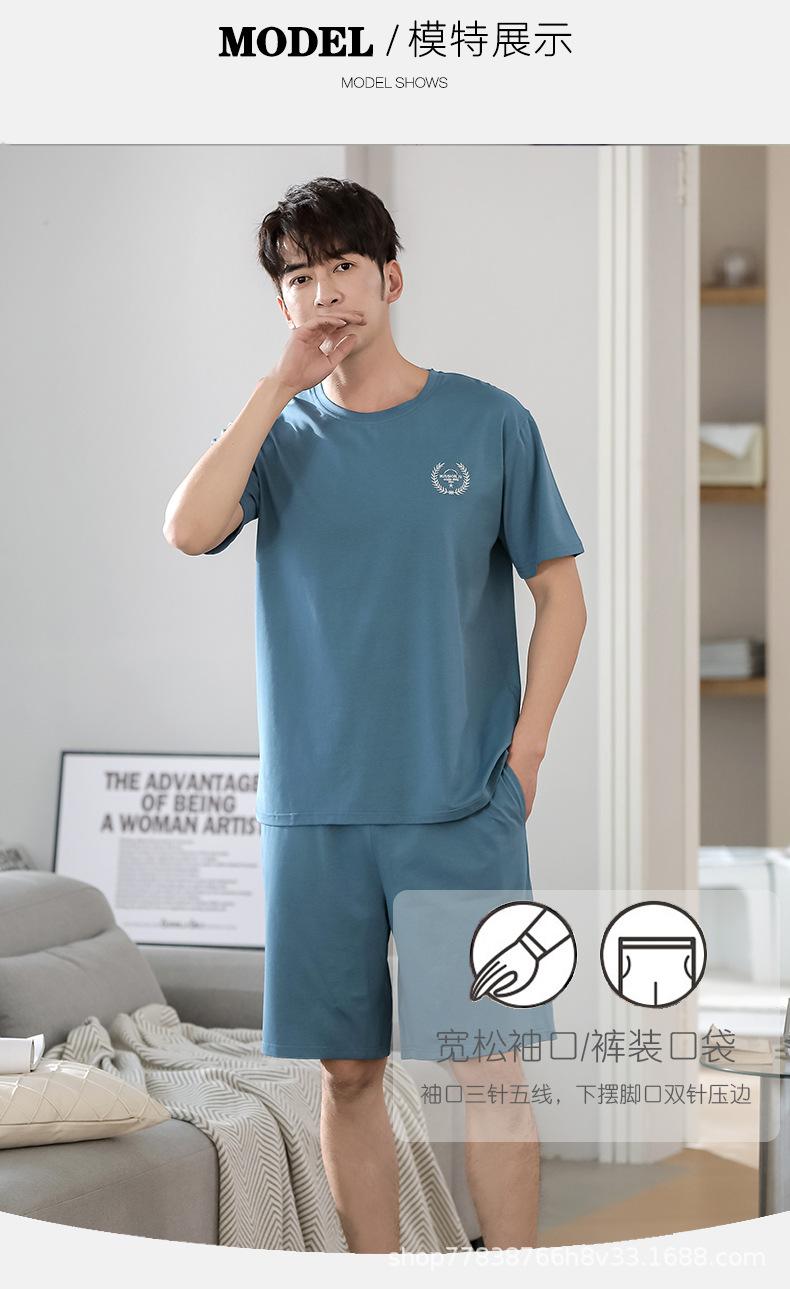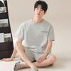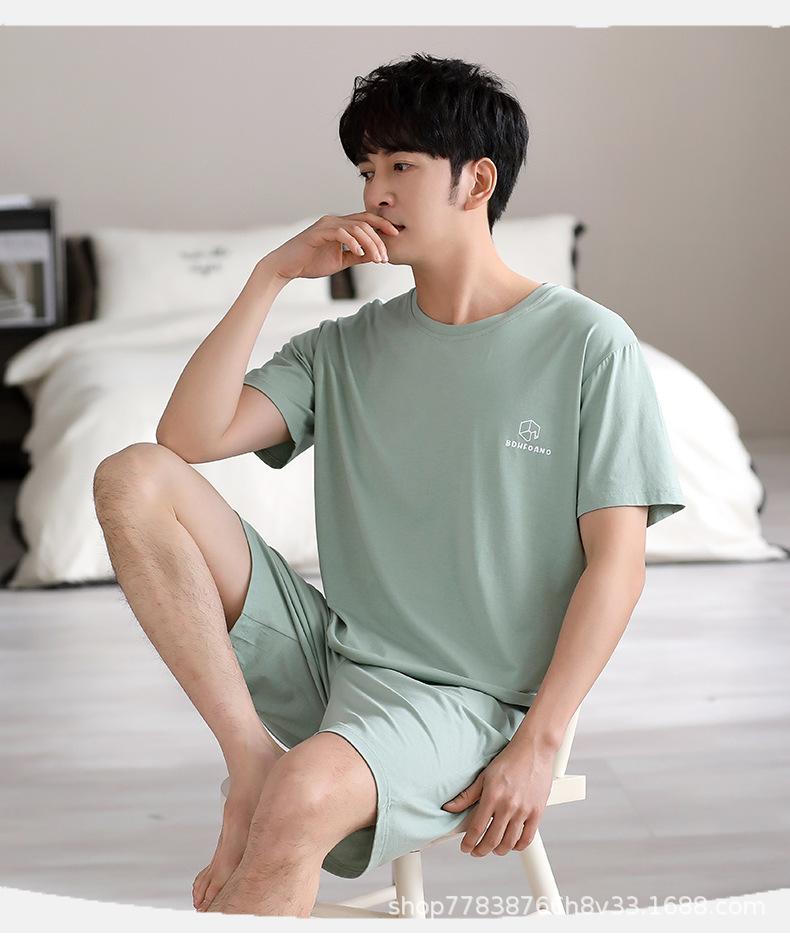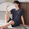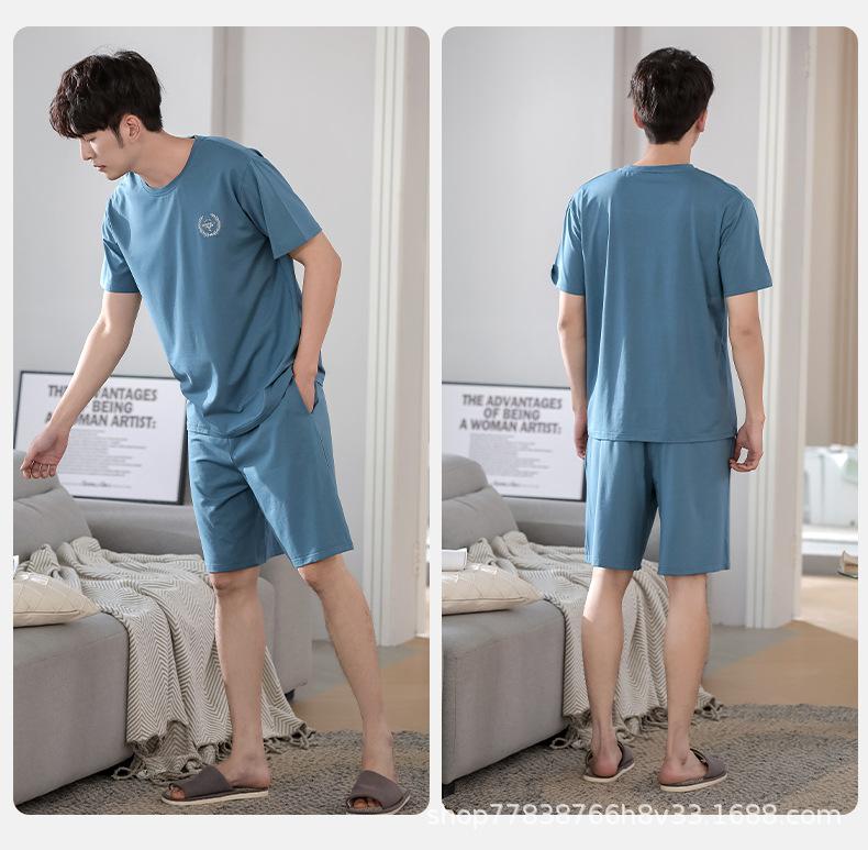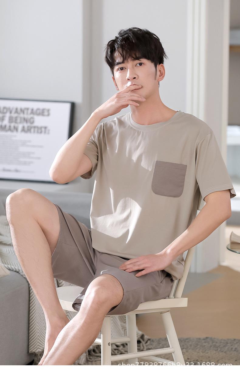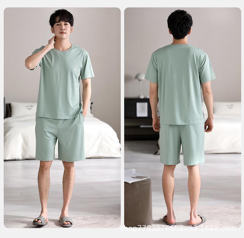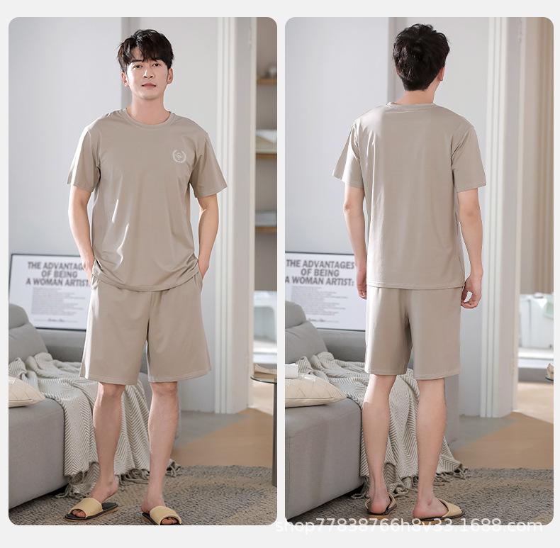 Pijama de verano para hombre, de manga corta, con cuello redondo, informal, para estar en casa, sencillo y fino.