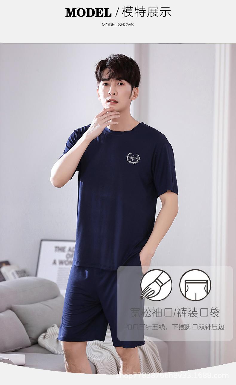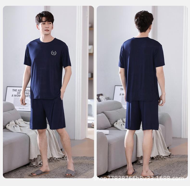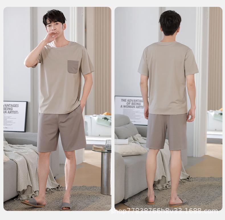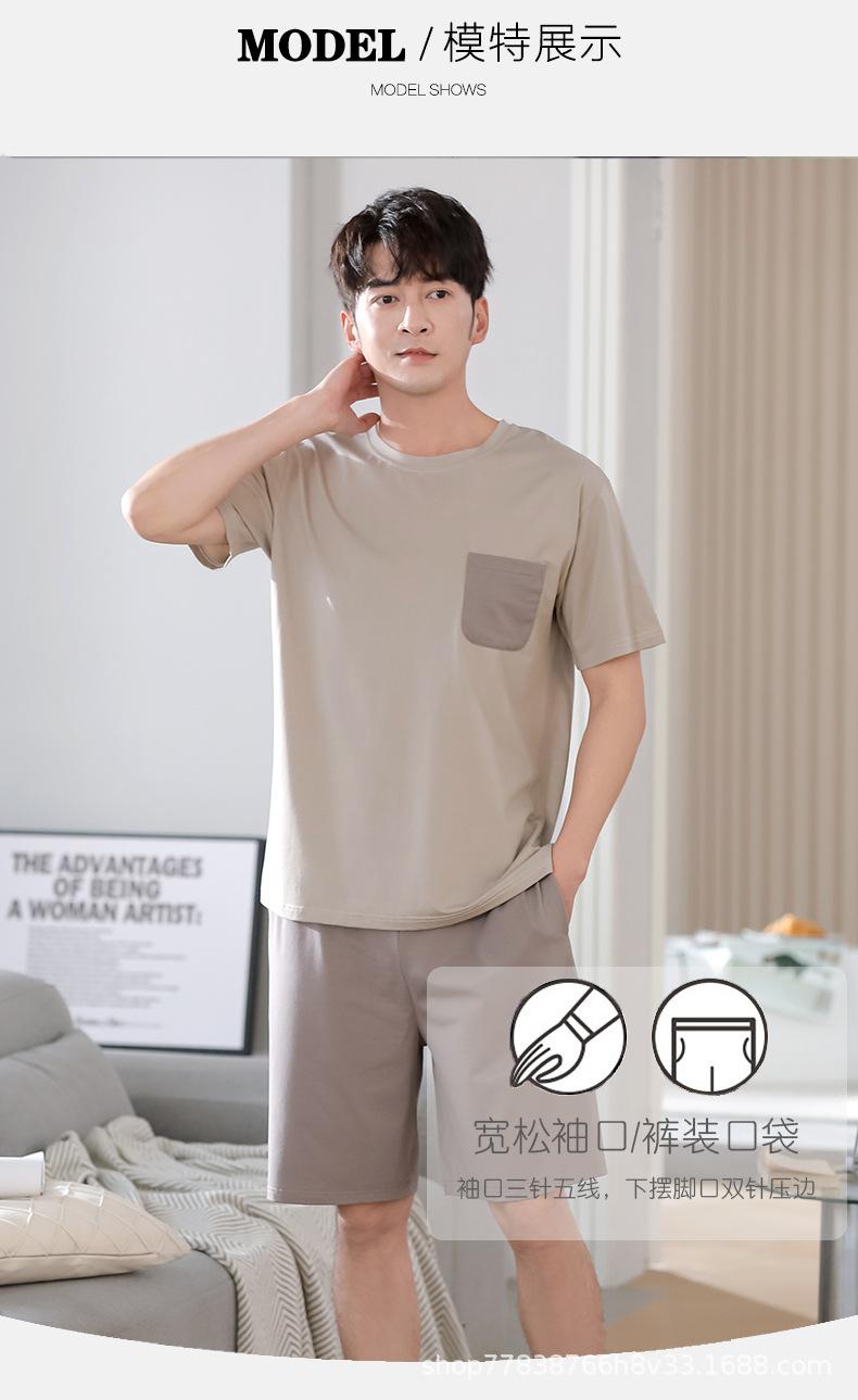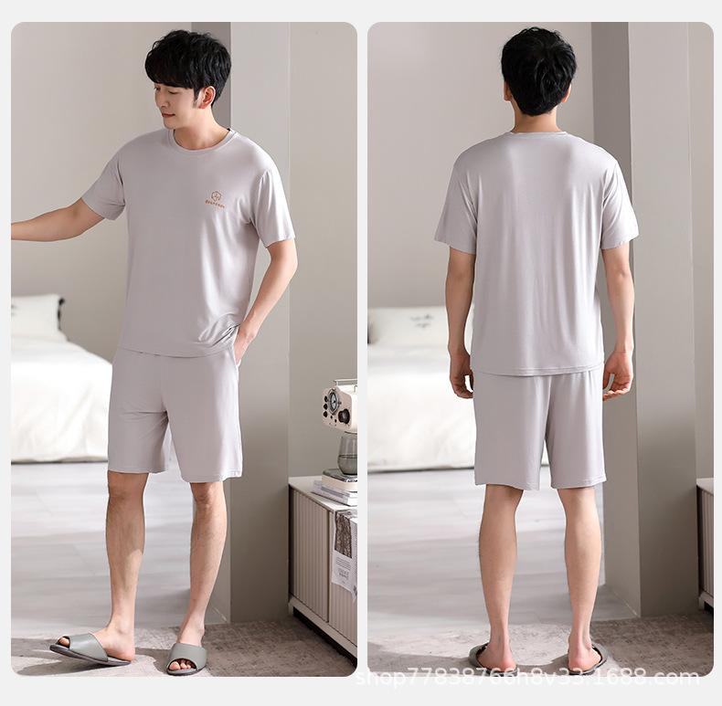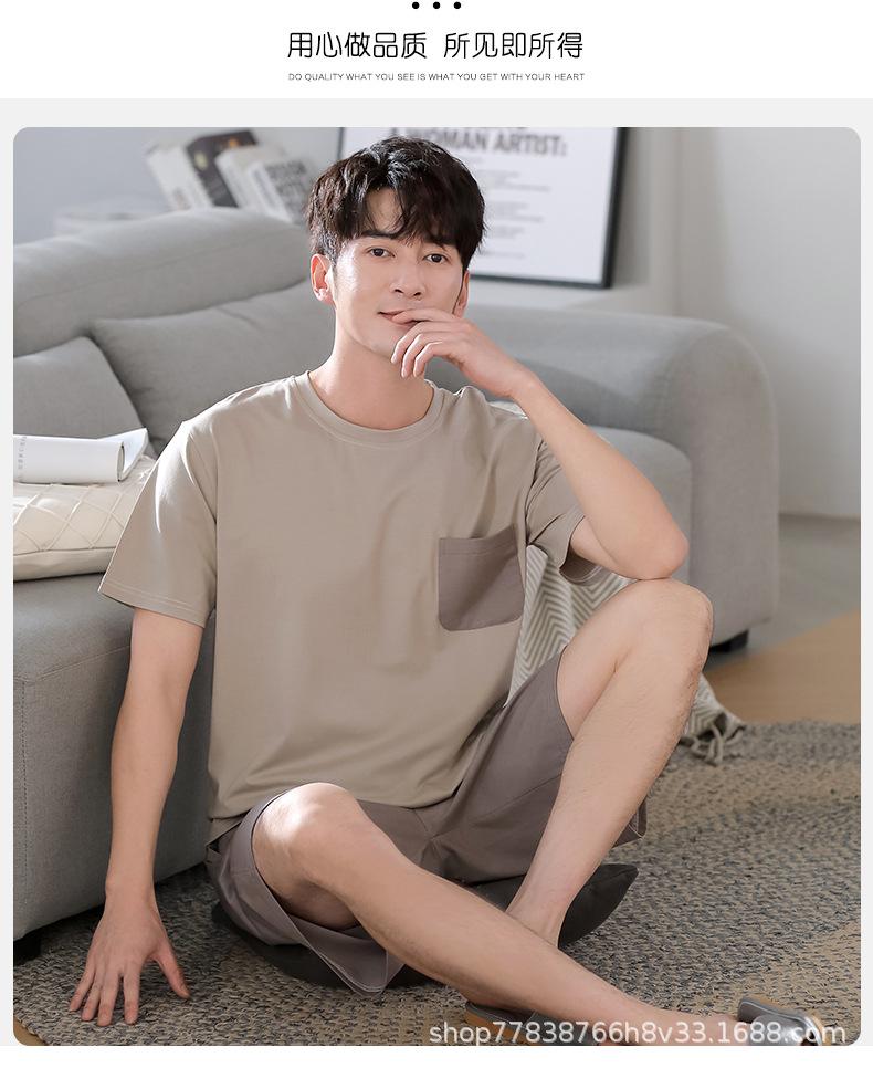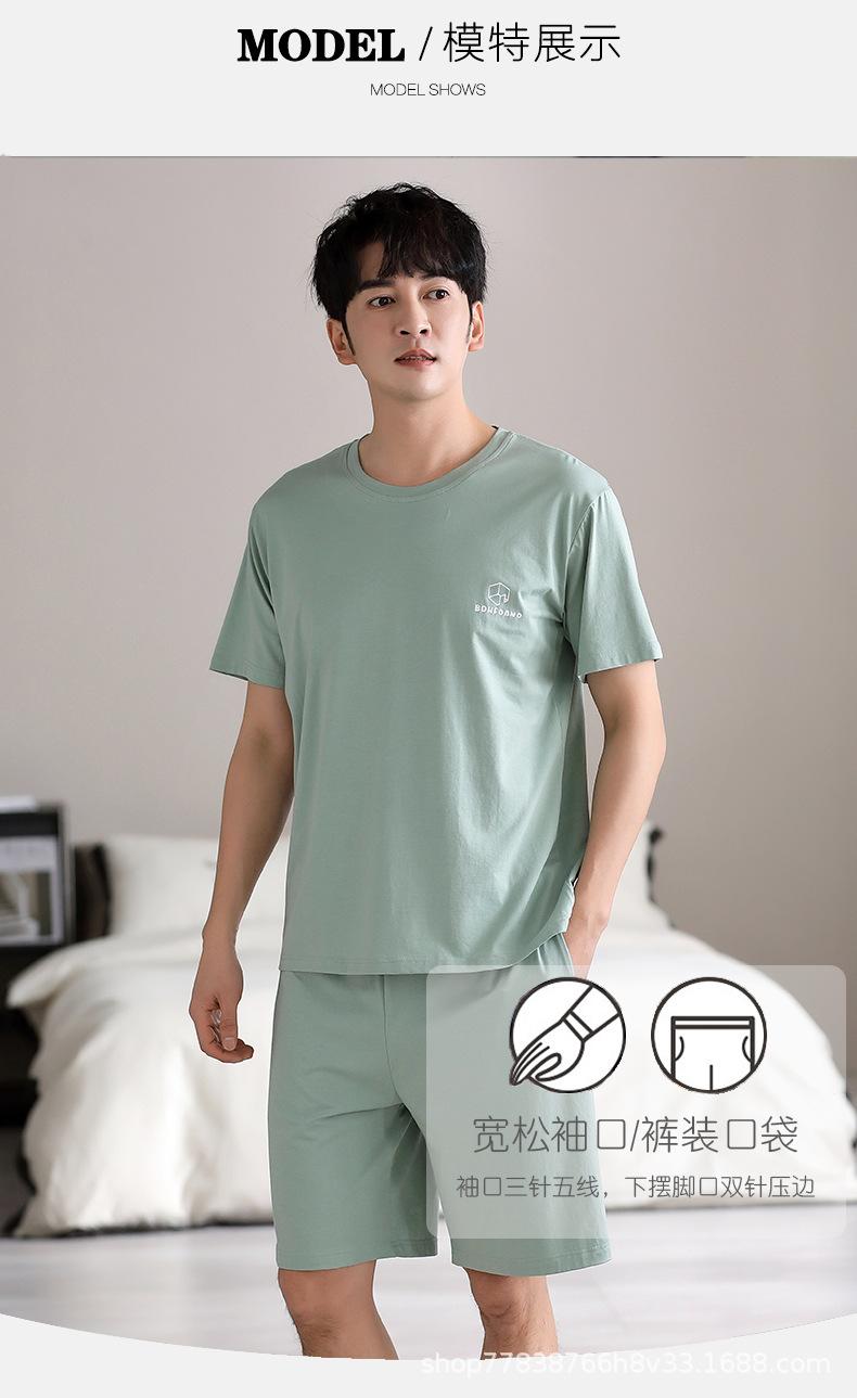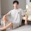 Pijama de verano para hombre, de manga corta, con cuello redondo, informal, para estar en casa, sencillo y fino.
