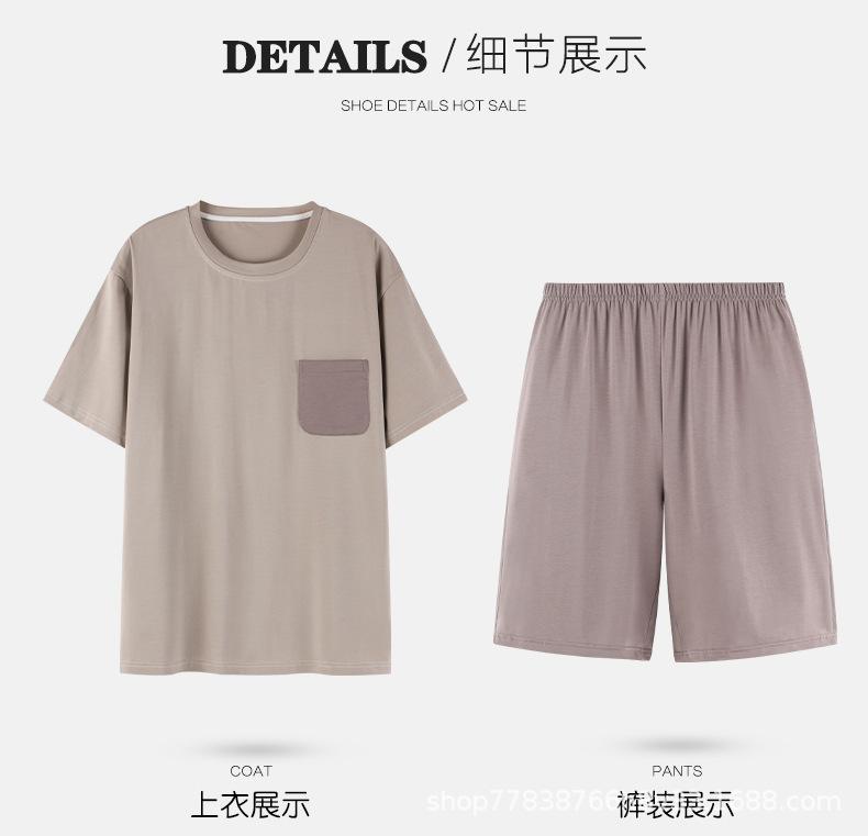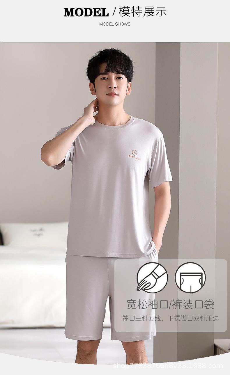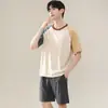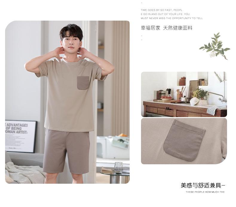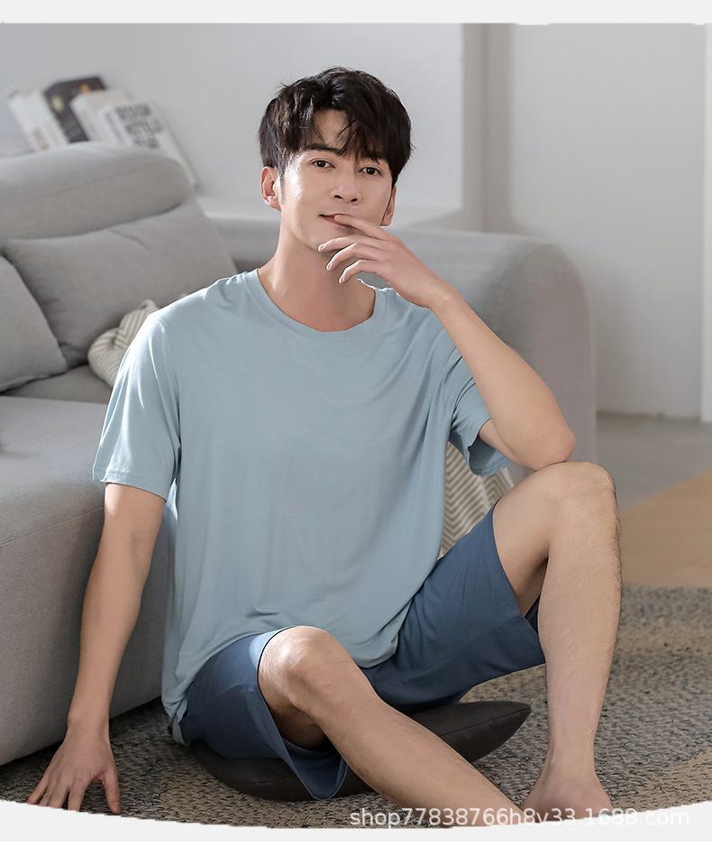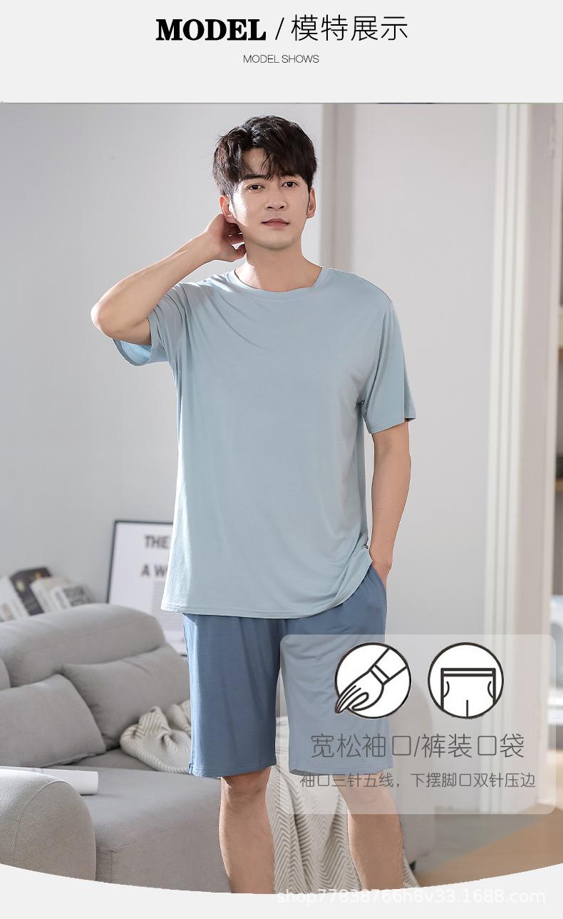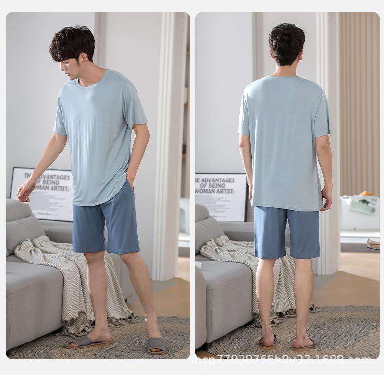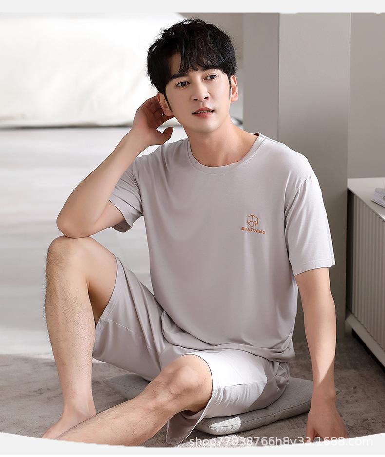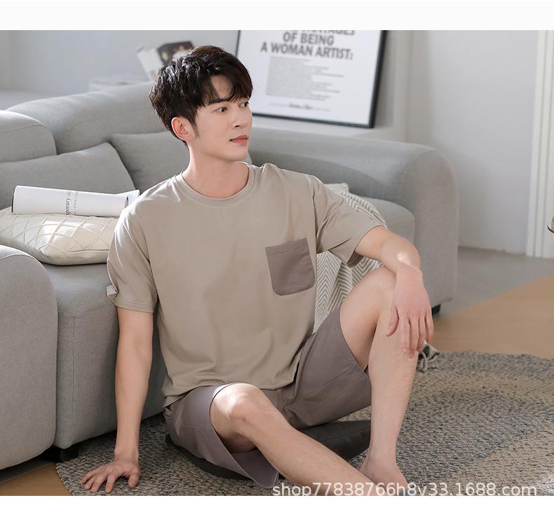 Pijama de verano para hombre, de manga corta, con cuello redondo, informal, para estar en casa, sencillo y fino.