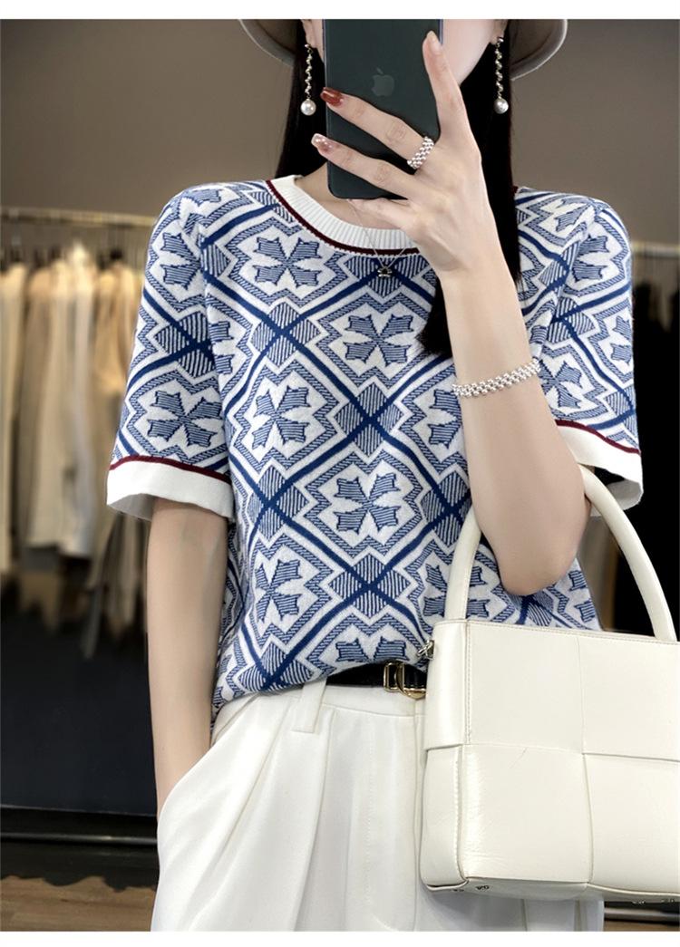 Camiseta de algodón de manga corta con estampado geométrico para mujer, nueva moda de verano 2023, transpirable, a juego, ropa para mujer