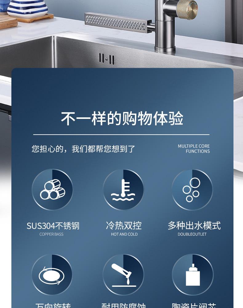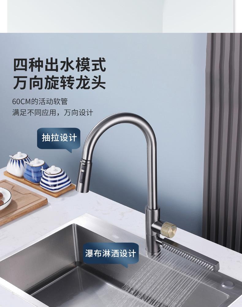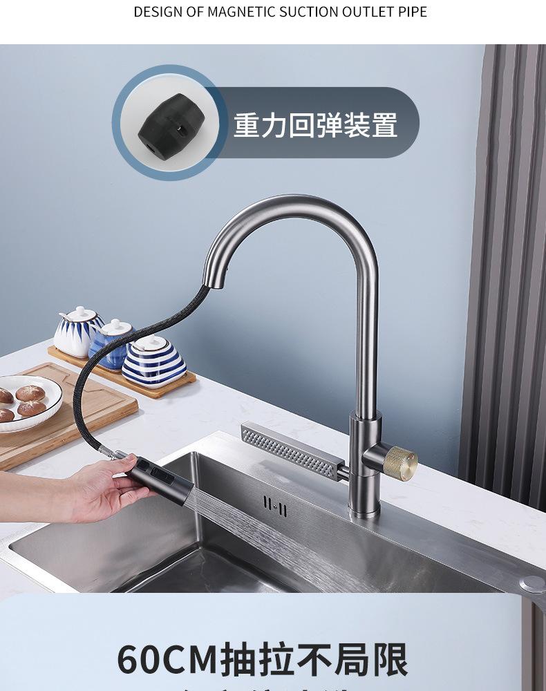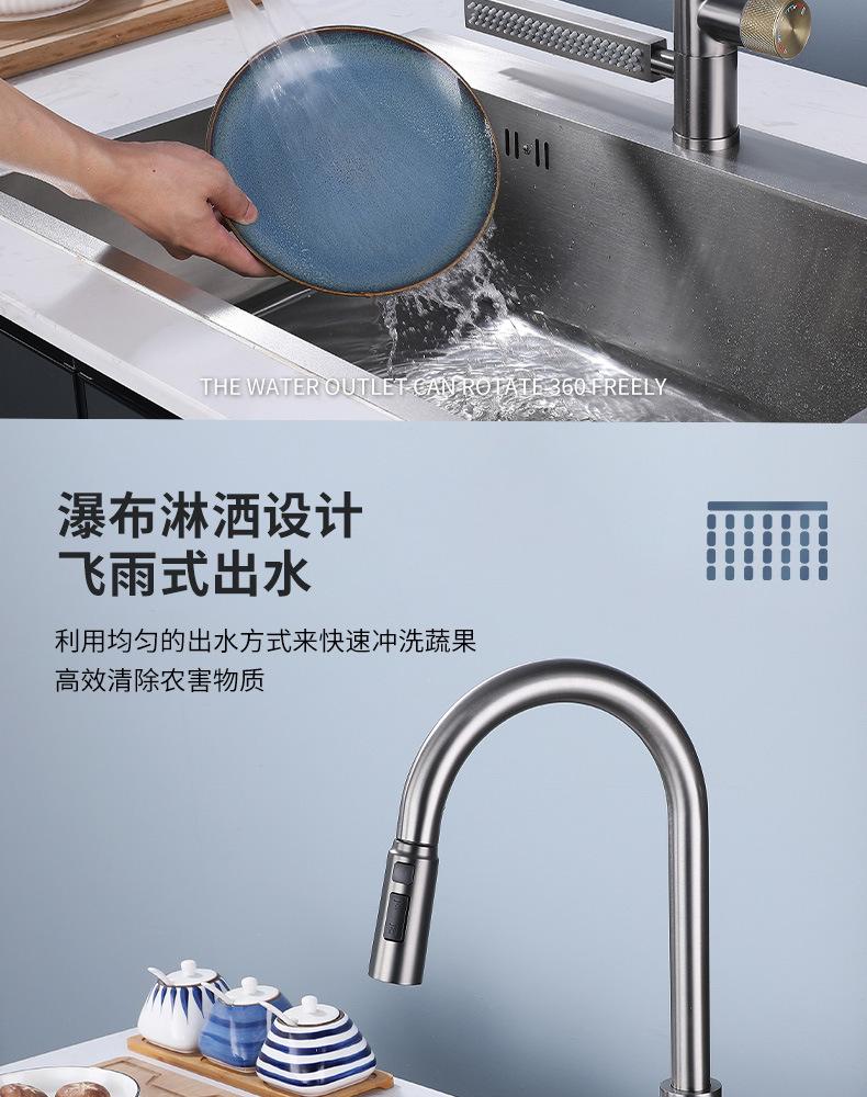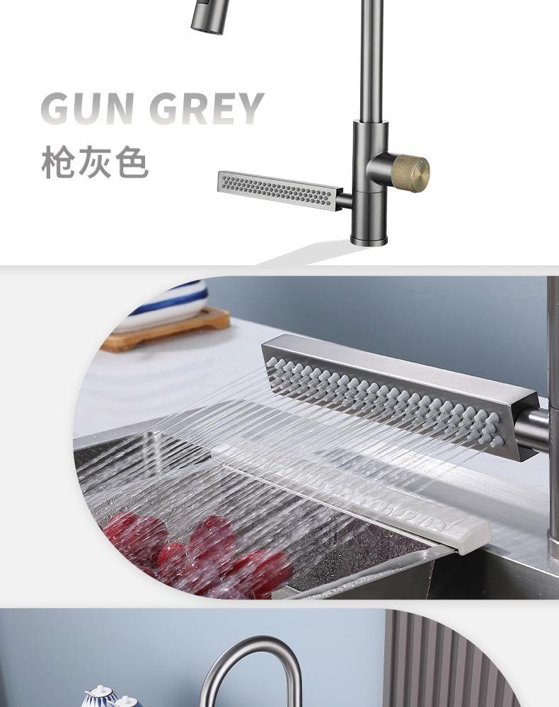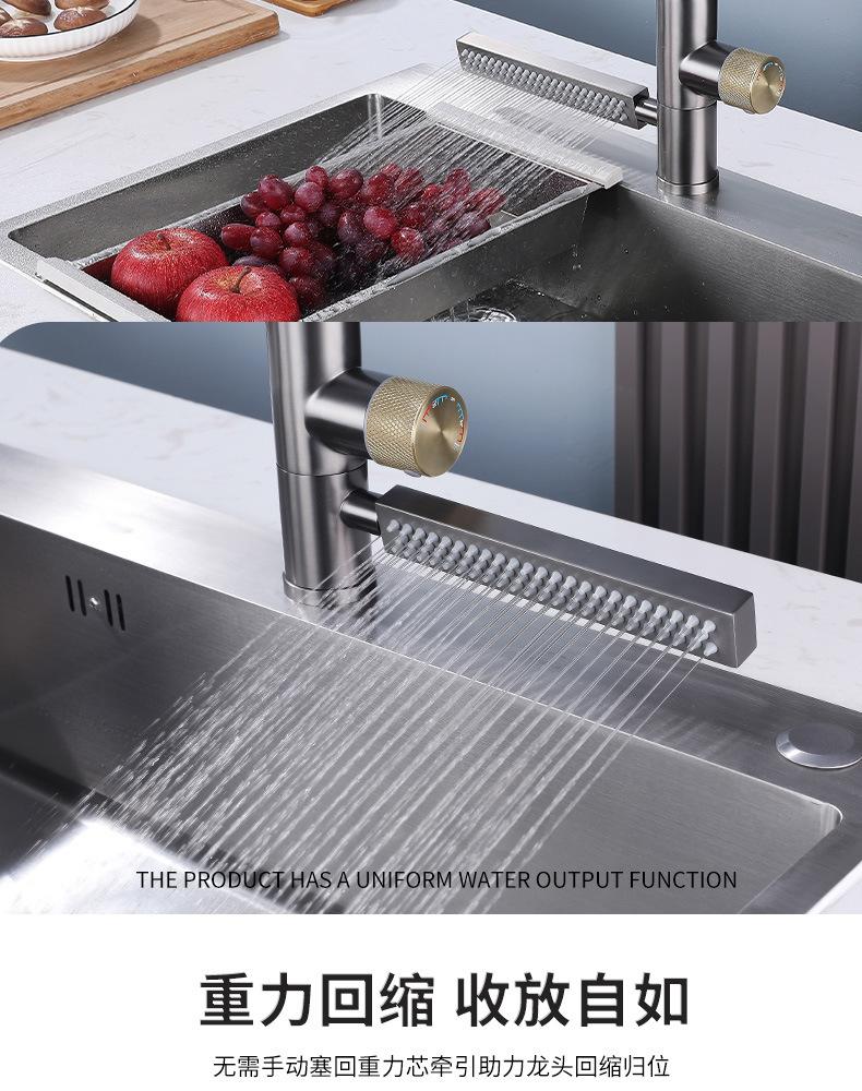 Grifo de Cocina Cascada Feiyu Acero Inoxidable Frío y Caliente Giratorio Grifo para Lavabo Extraíble Multifuncional