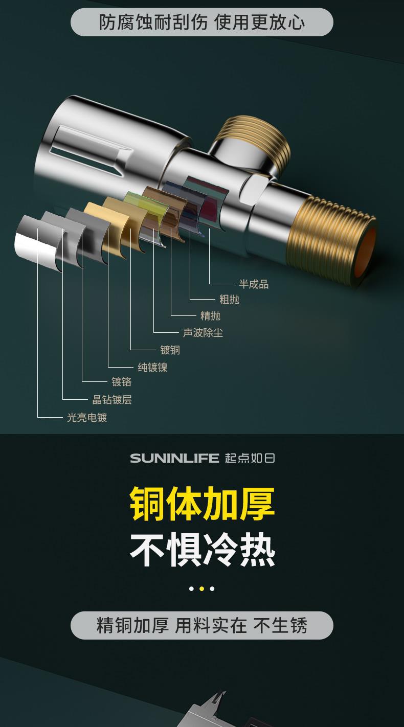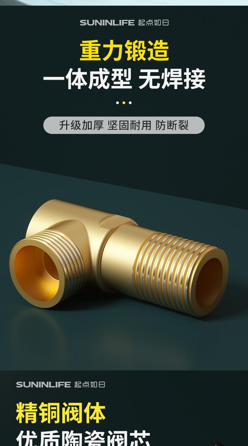 Válvula triangular de cobre para agua fría y caliente, interruptor de válvula de 4 puntos, válvula de agua de parada doméstica de acero inoxidable 304 de tres vías, una entrada y dos salidas