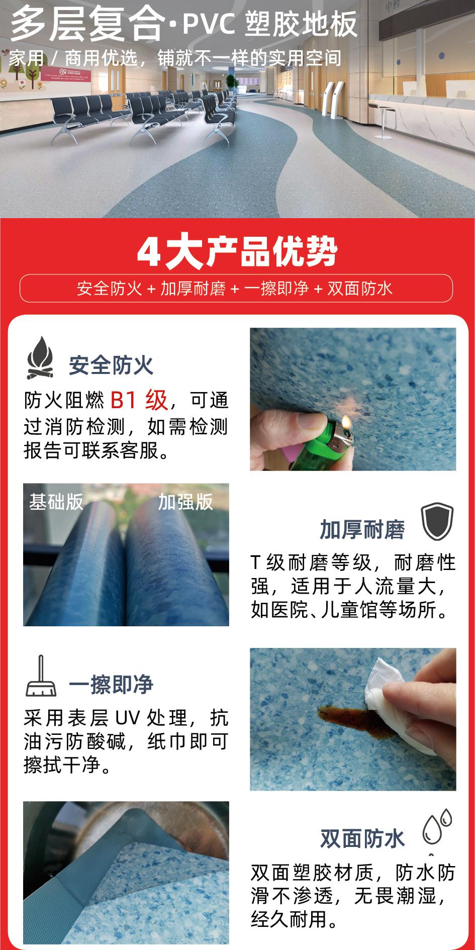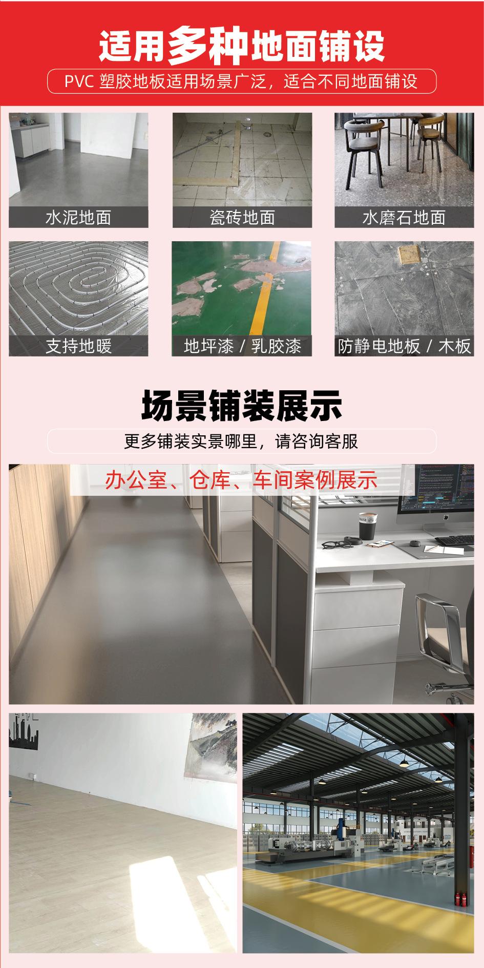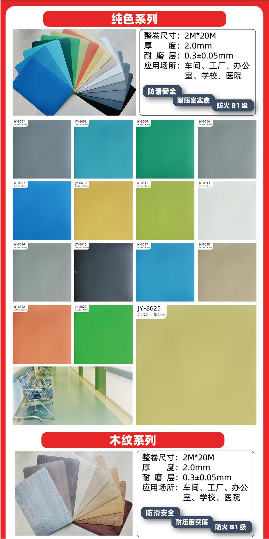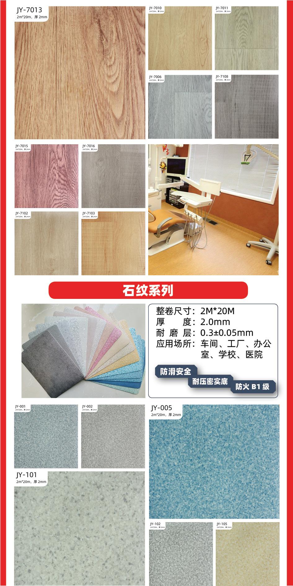 Adhesivo para Piso de PVC Cabello Liso de Fábrica Reforzado Resistente al Desgaste Antideslizante Cuero para Piso Hospital Escuela Ignífugo Piso de Plástico en stock