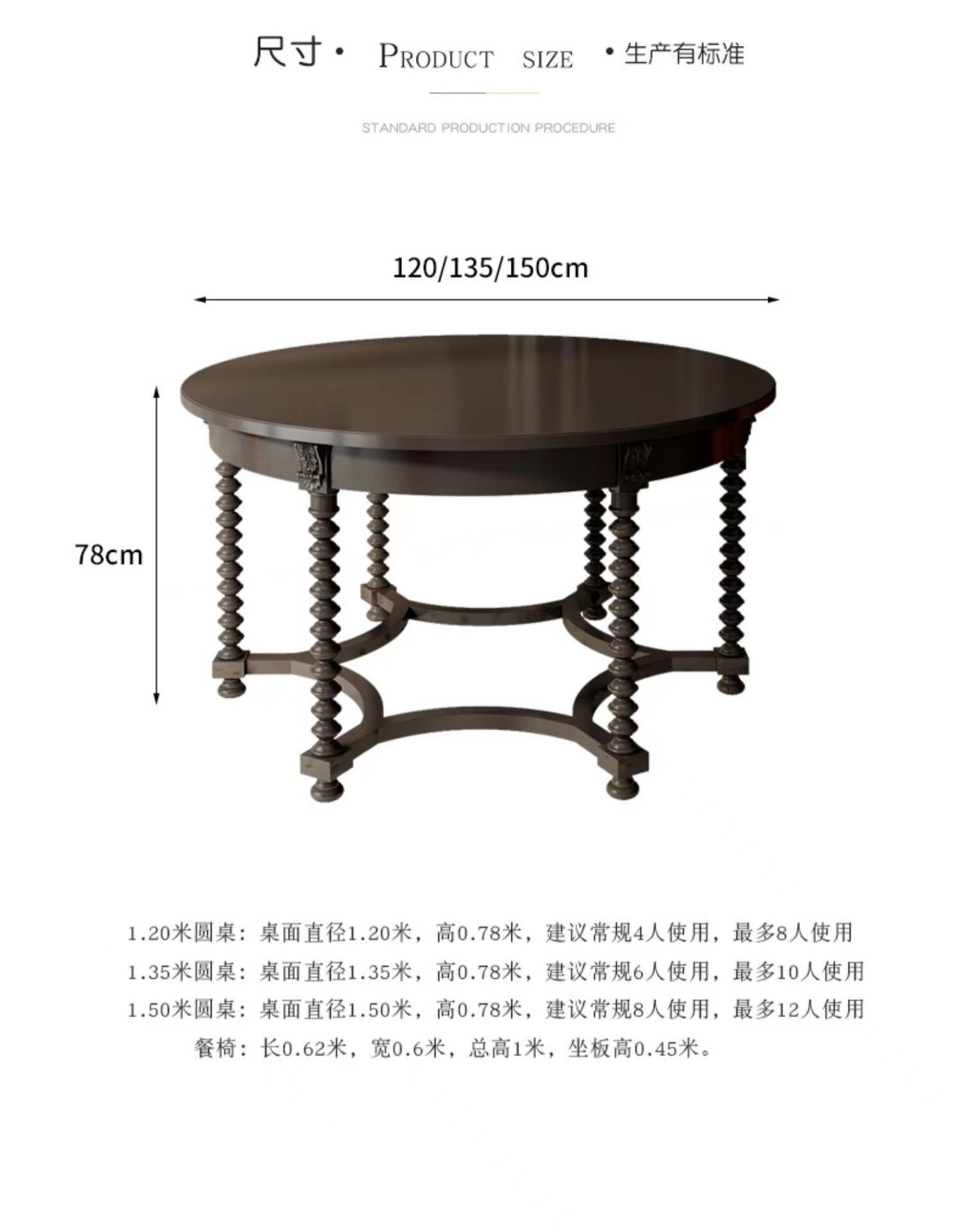 Diámetro del tablero 1/1.1/1.2 metros, altura de la mesa 0.78 metros
