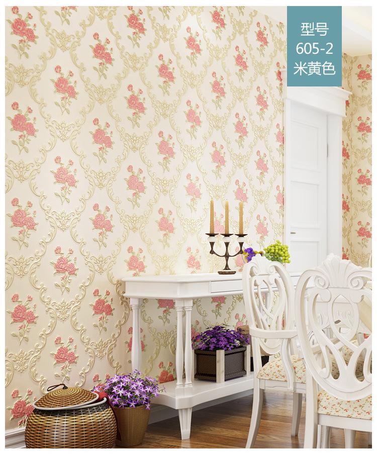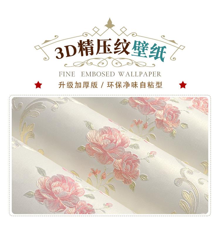 Papel tapiz de estilo europeo autoadhesivo, grueso, con diseño de flores pastorales de lujo, para dormitorio, sala de estar y hogar.