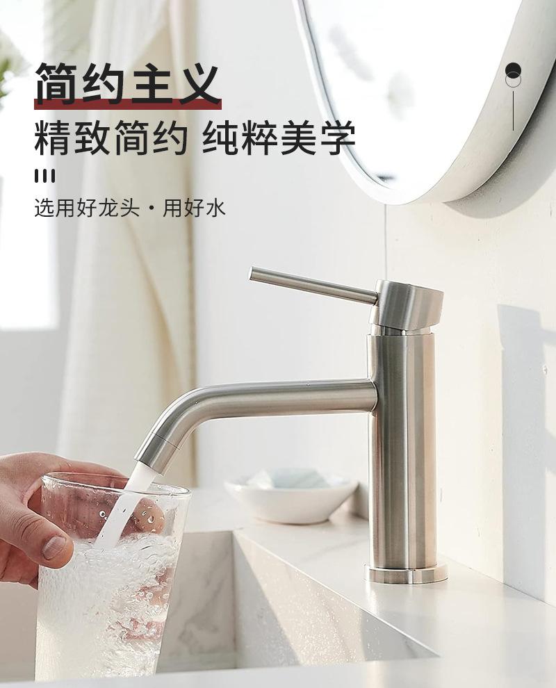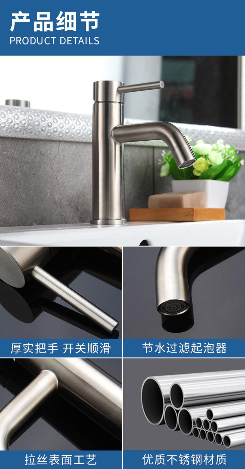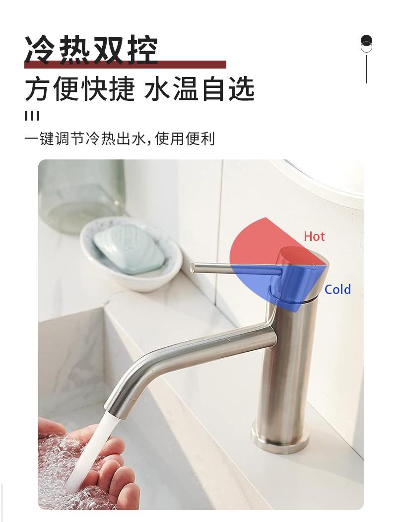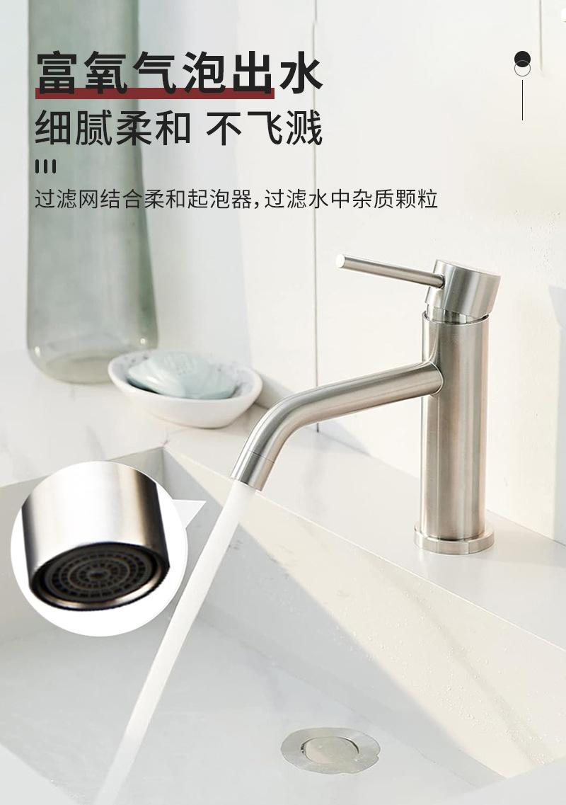 Grifo de Lavabo de Acero Inoxidable 304 Hogar Escuela Ingeniería Lavabo Lavamanos Redondo Monomando Frío y Caliente