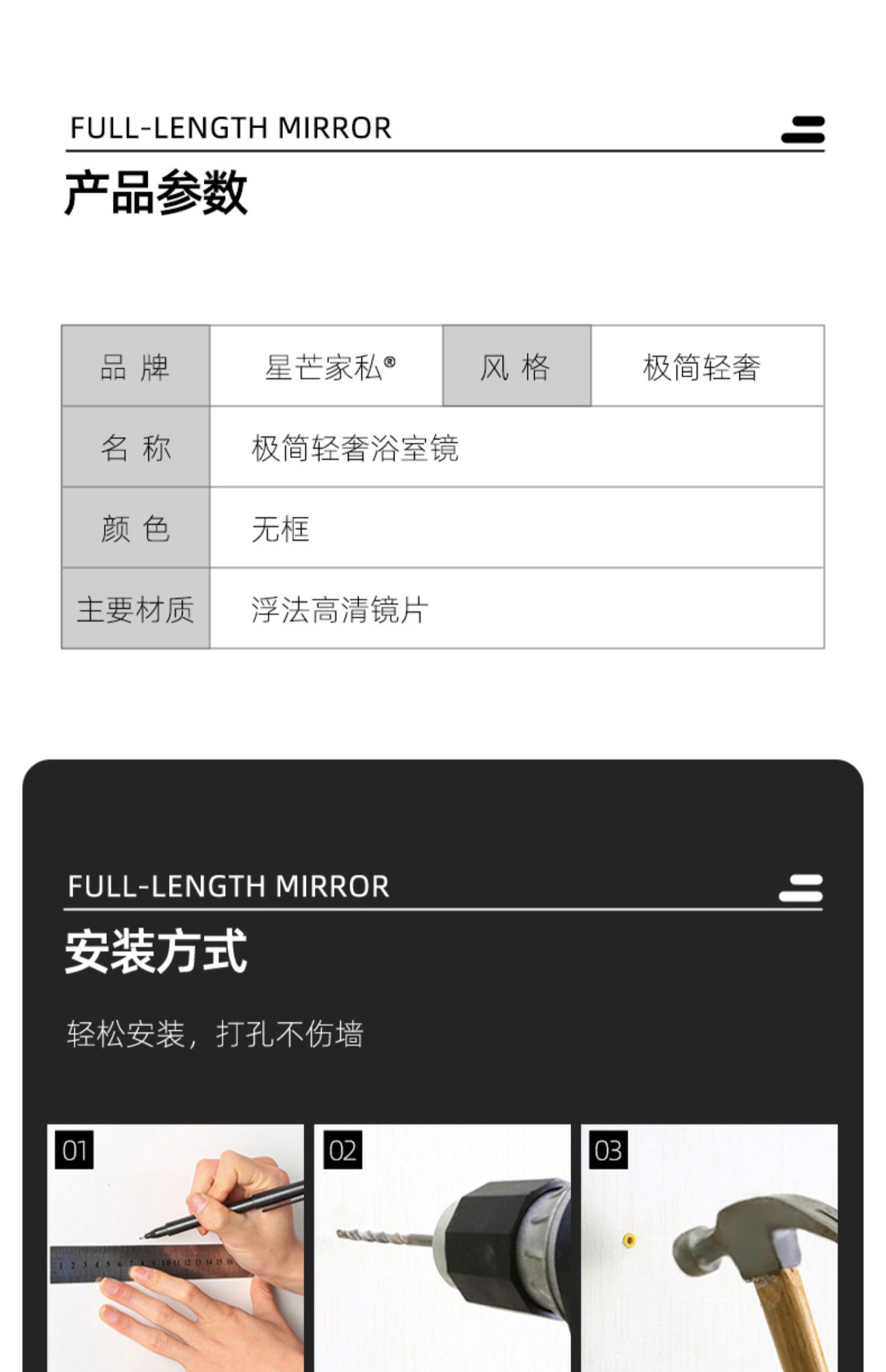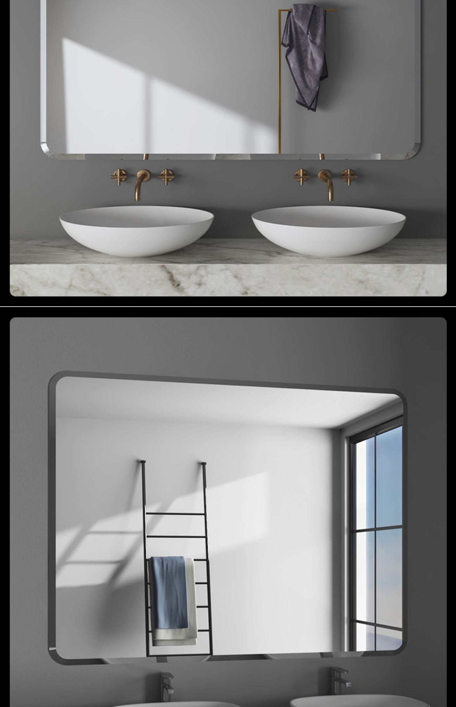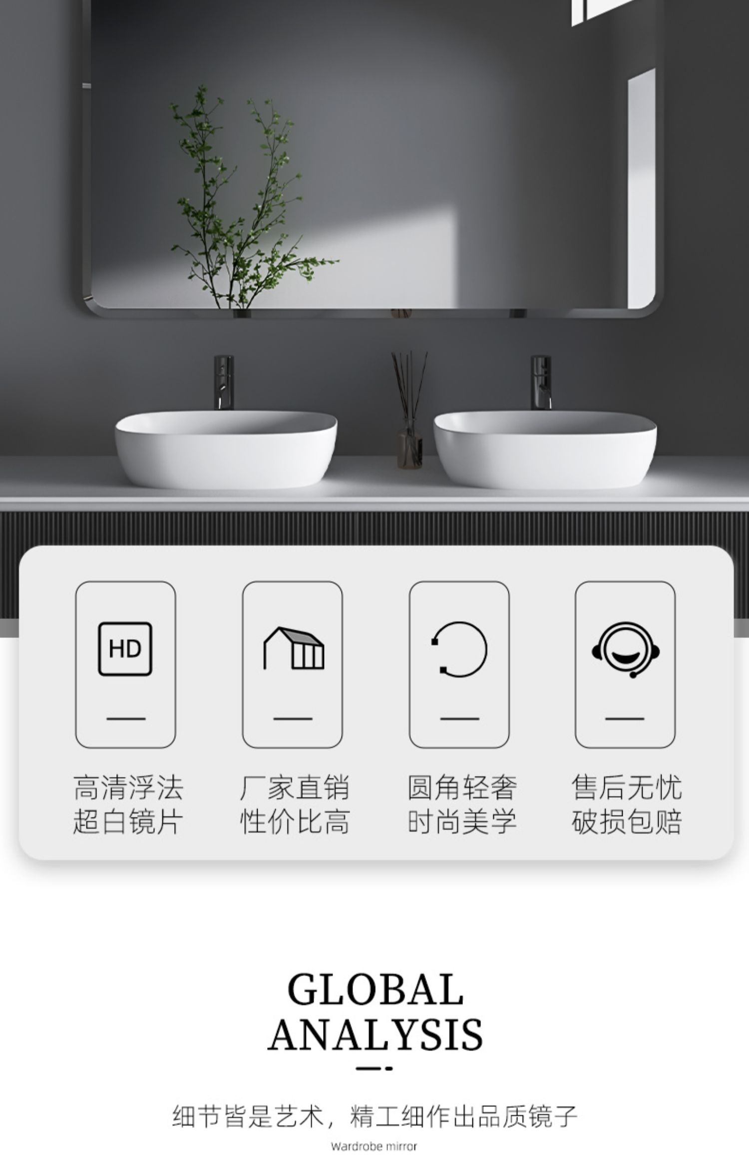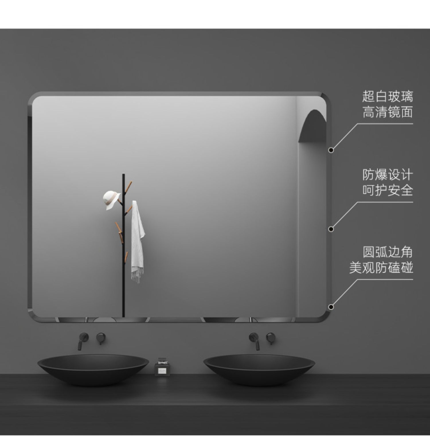 Espejo de baño estilo lujo ligero sin perforación montado en la pared autoadhesivo espejo de baño montado en la pared espejo de maquillaje para inodoro espejo para lavabo