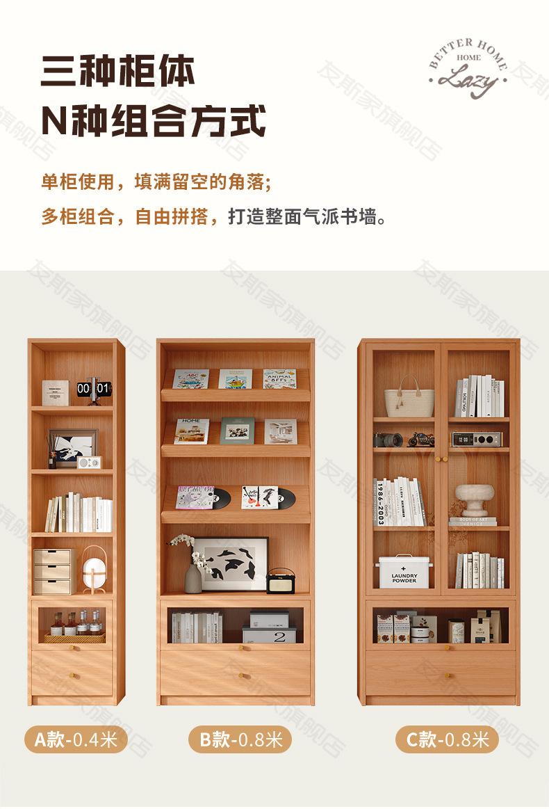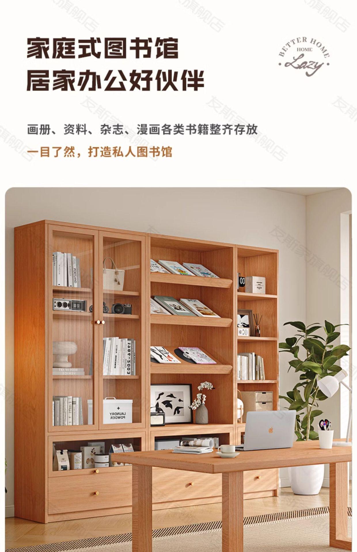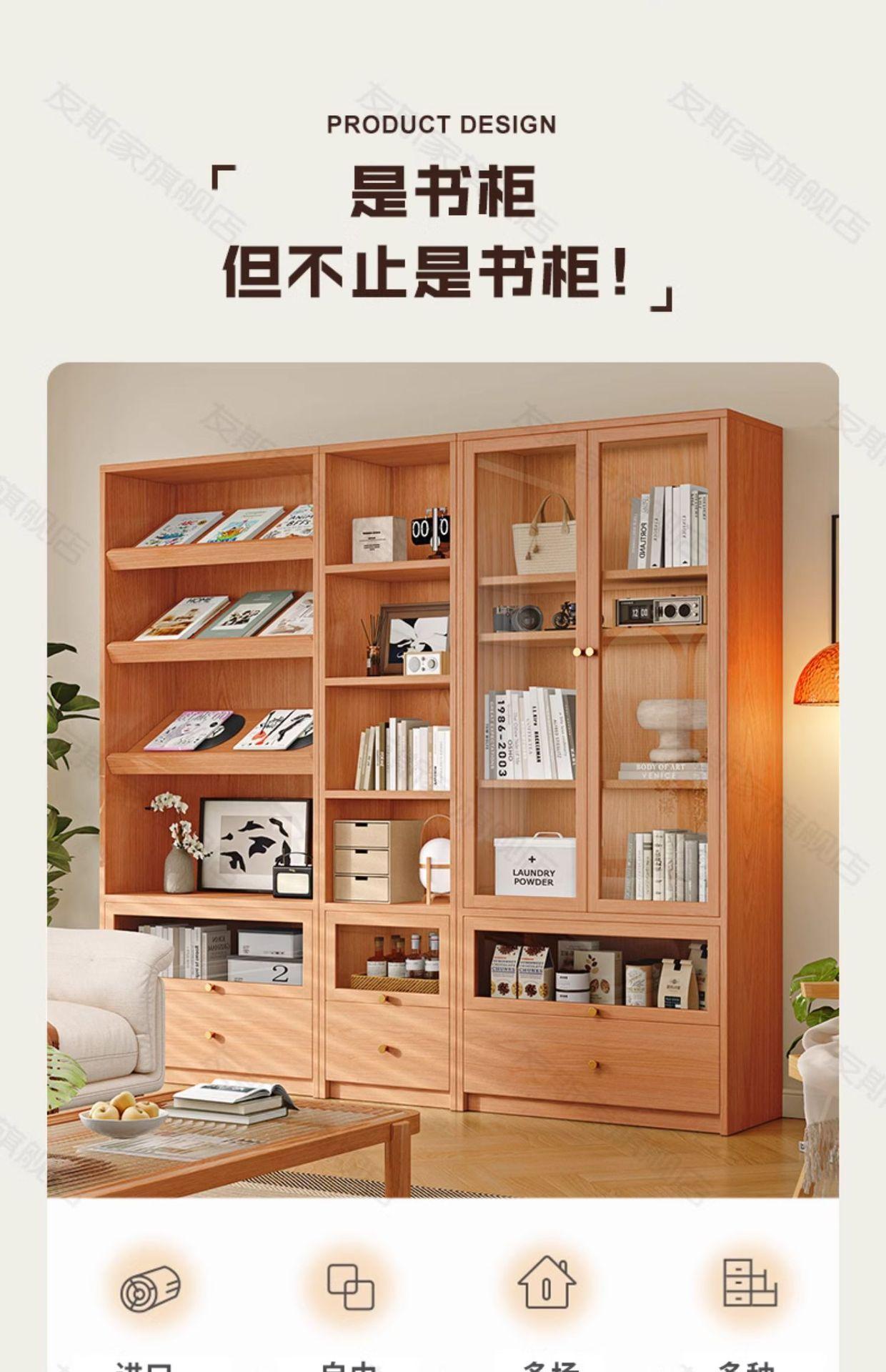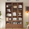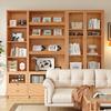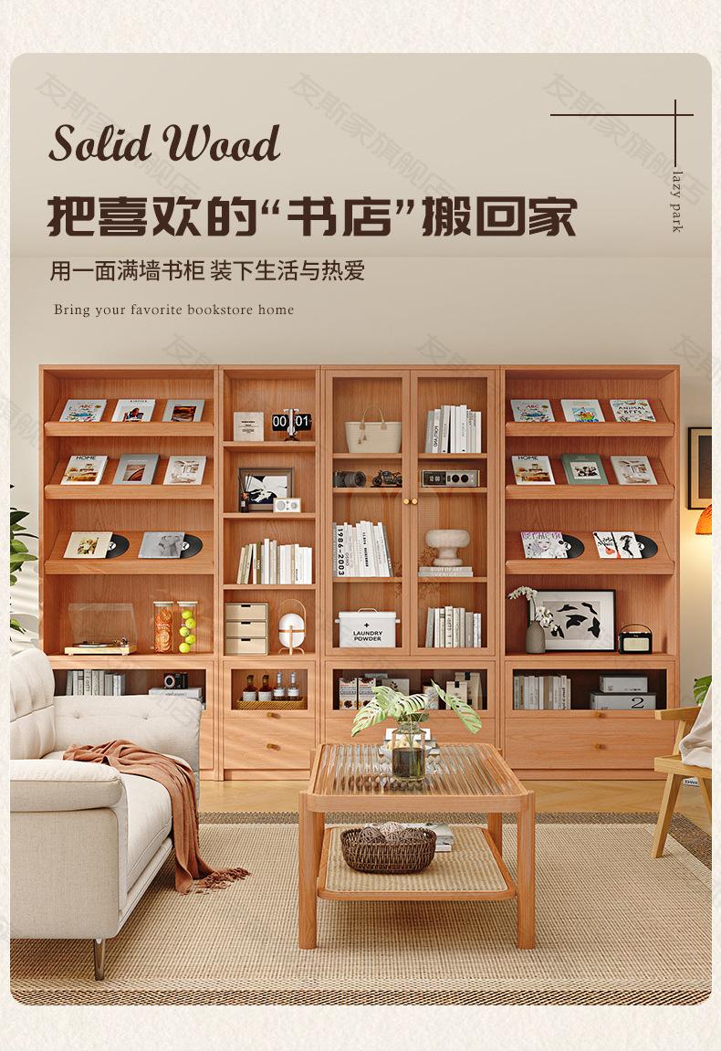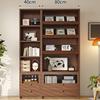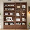 Librería de madera maciza para sala de estar, armario de almacenamiento integrado para sofá de pared a arriba, estantería de estudio de pared completa en color nogal, armario combinado