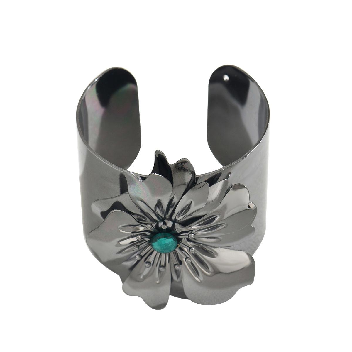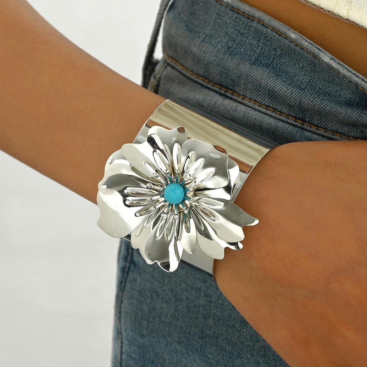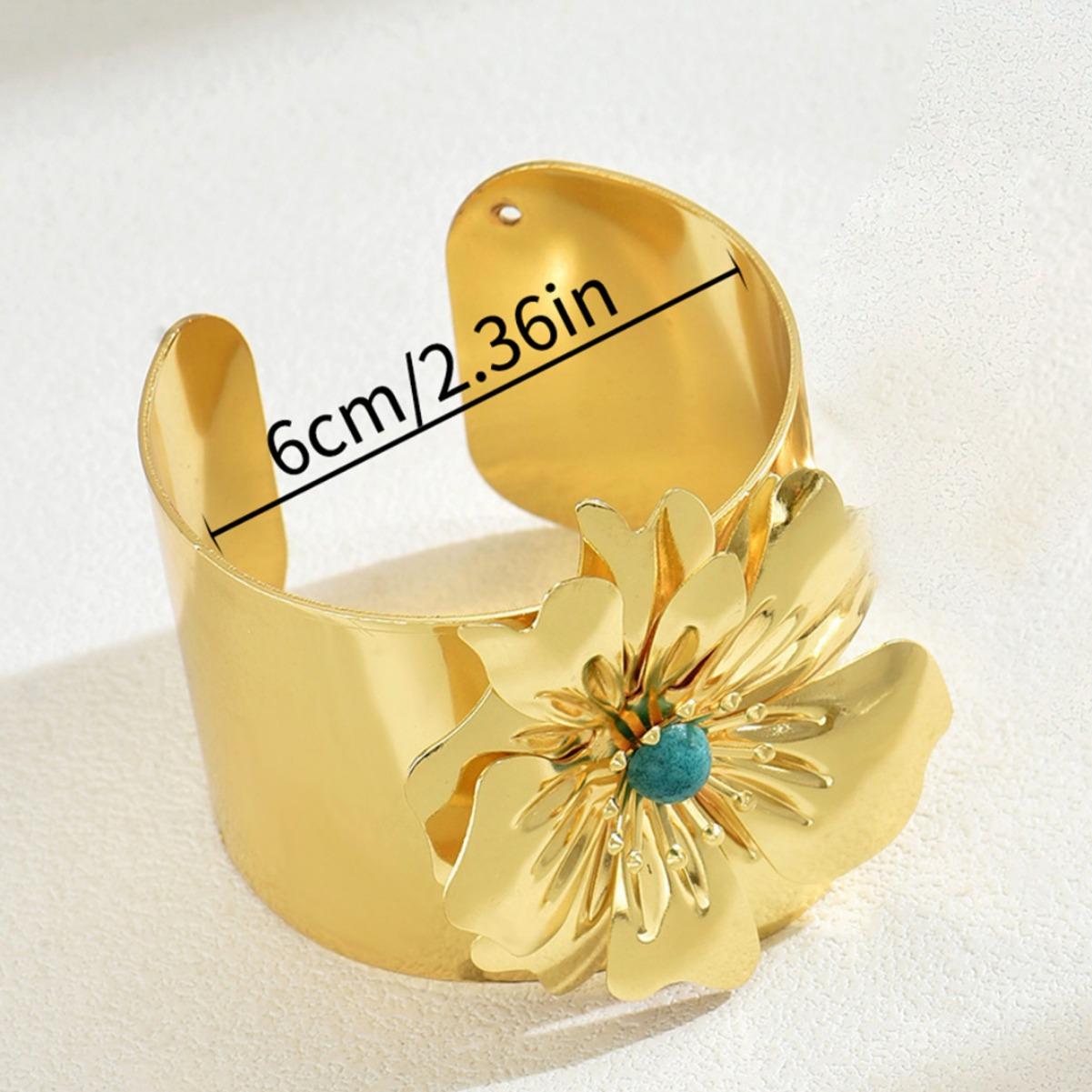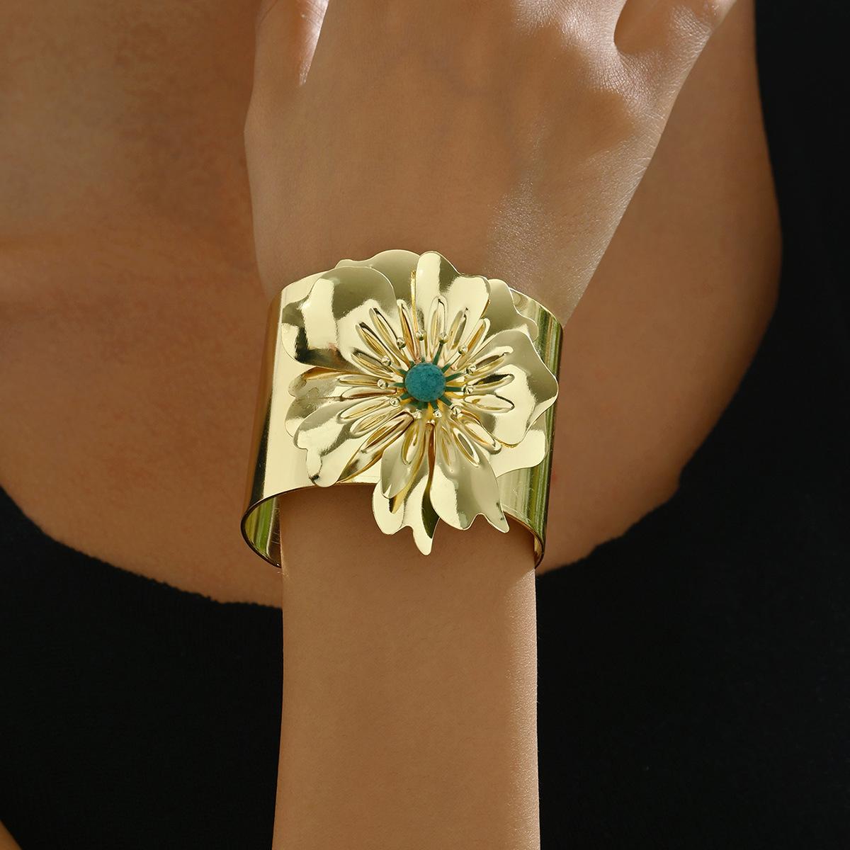 Pulsera de flores de metal electrochapado en oro de 18k para mujer europea y americana, diseño de ajuste de apertura de nicho, tendencia de pulsera, joyería exagerada