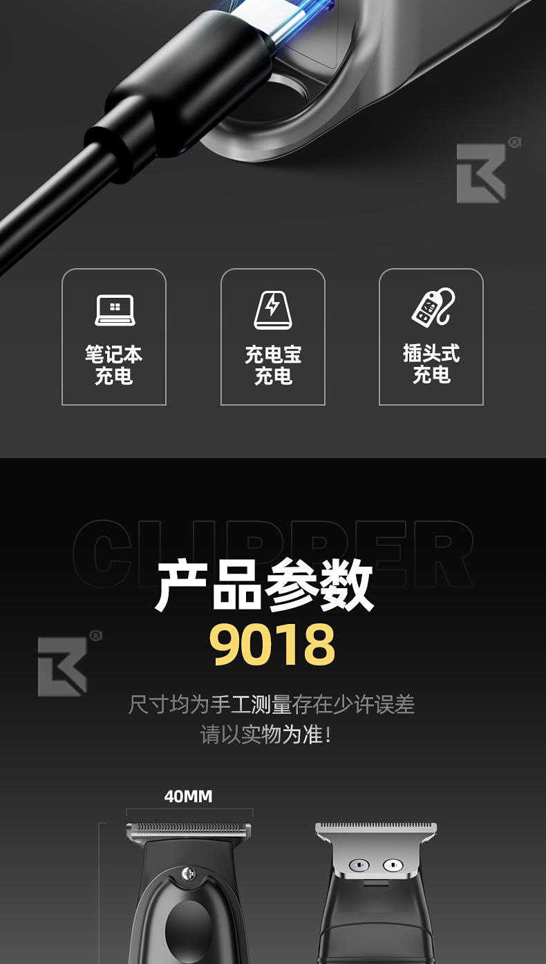 9018 Rubber Black - Haircut Set [Sponge + Cloth + Comb + Model + Storage Bag + Knife Head + Flat Scissors + Dental Scissors]