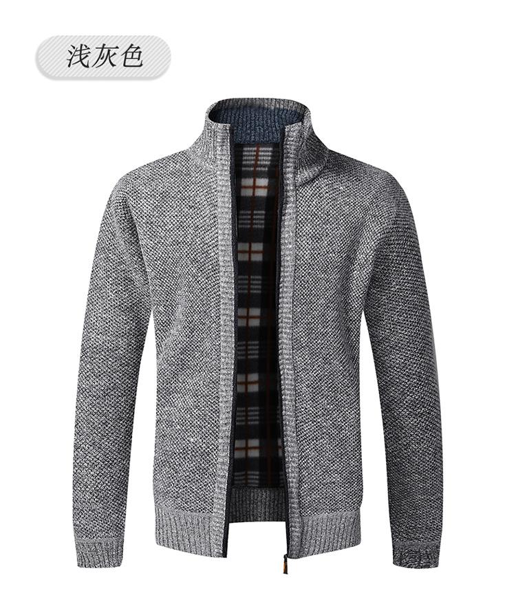 Otoño e invierno 2023 Nuevo plus terciopelo acolchado talla grande comercio exterior Suéter de hombre cuello alto cárdigan camisa abrigo delgado para hombre