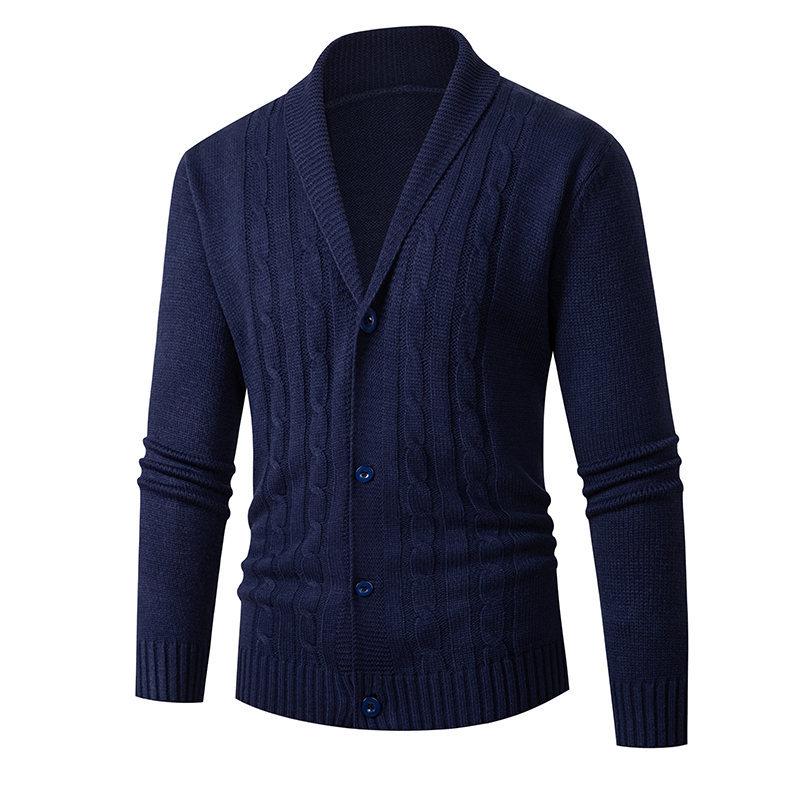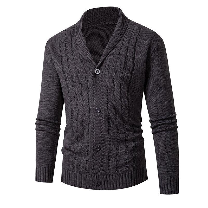 Suéter casual para hombre transfronterizo europeo y americano nuevo de 2024, cálido y grueso, cárdigan con giro para otoño e invierno, abrigo