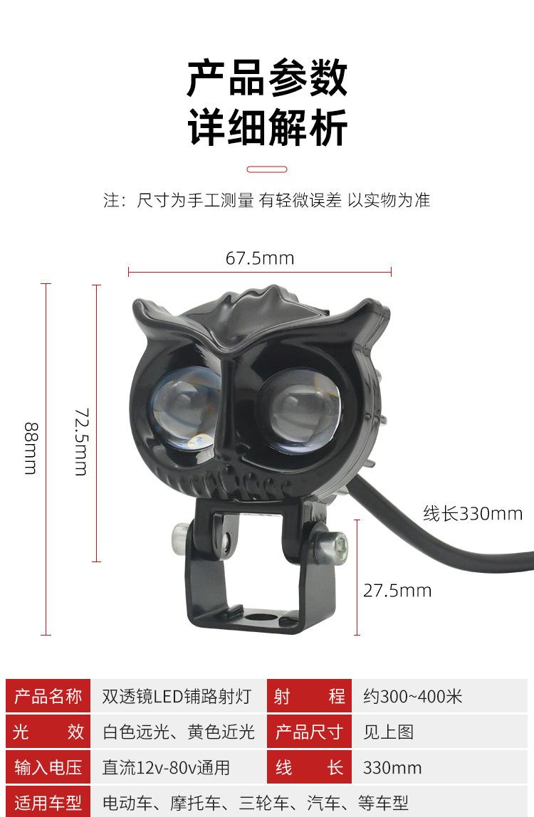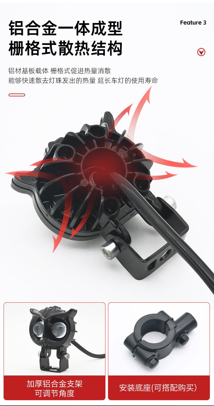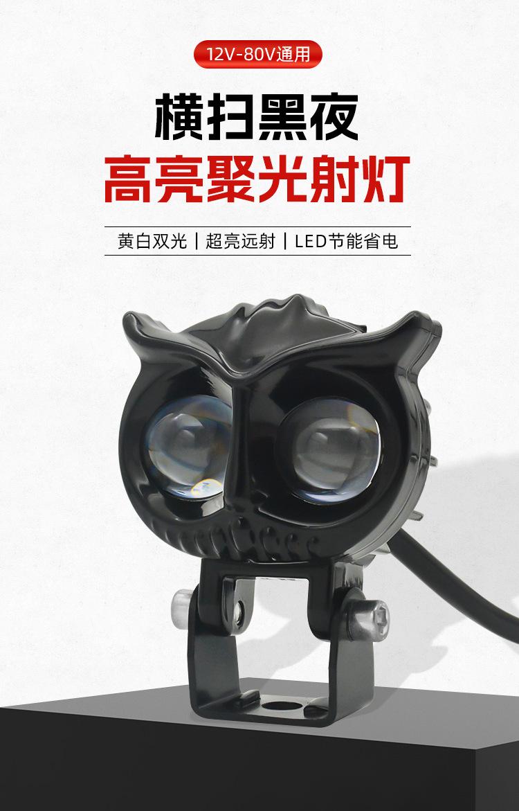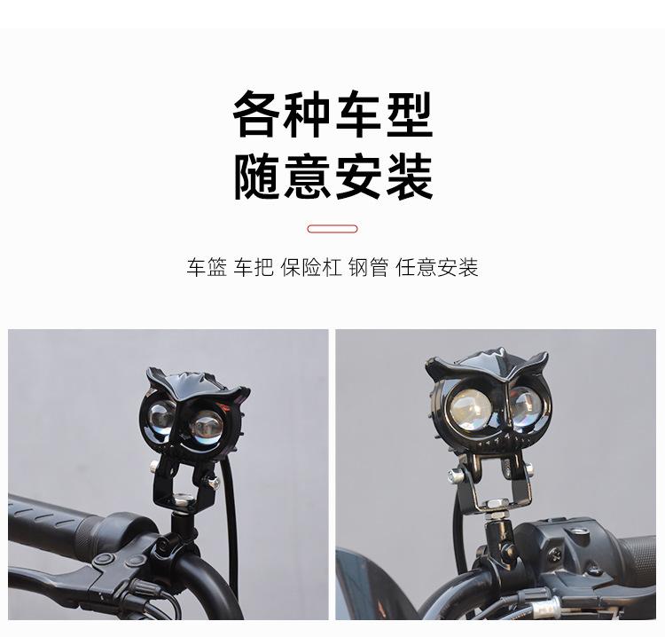 Foco LED para motocicleta, faro delantero para coche eléctrico, lámpara LED modificada, impermeable, doble color, búho, pequeña pistola de acero