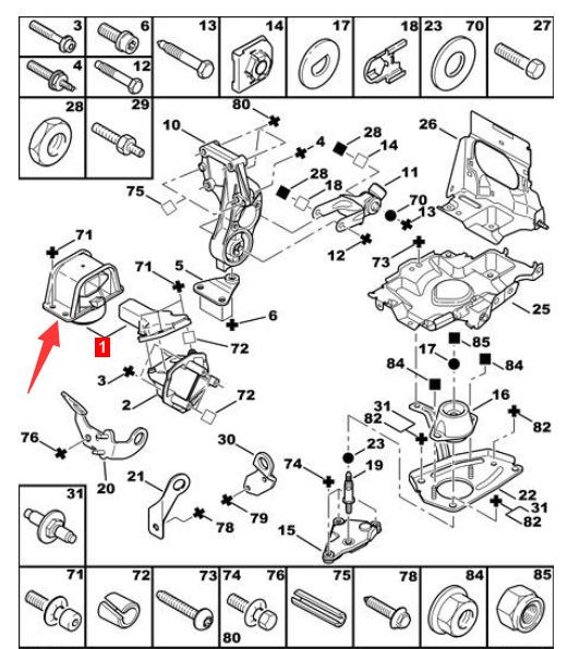 | Soporte del motor derecho | 9637060080/183991/1839H8 |