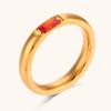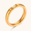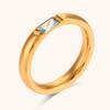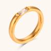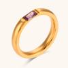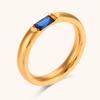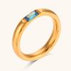 Anillo de piedra de nacimiento de circón rectangular transfronterizo europeo y americano, nicho simple, ligero, de lujo, de acero inoxidable chapado en oro, joyería para mujer