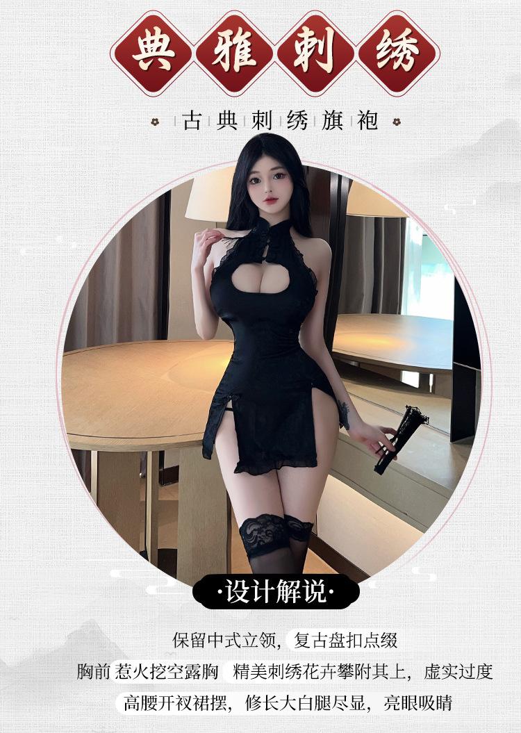 Noche como un Sueño Lencería Sexy Sexy Retro Cheongsam Hueco Caliente Espalda Malla Perspectiva Tentación Uniforme Generación 1672