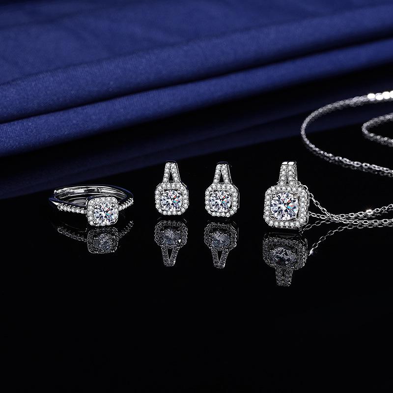 White gold earrings, 50 points ring white gold, Pendant + necklace set price