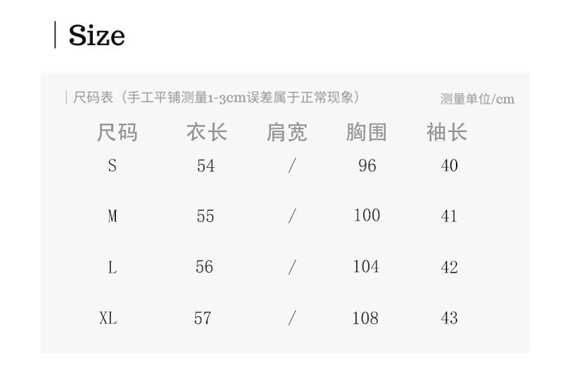 Recordatorio cálido: debido a las diferentes proporciones corporales, los tamaños anteriores son solo de referencia; debido a la medición manual, habrá un error de 2 ~ 4 cm, que no es motivo de devolución ni costo de envío, perdóname.