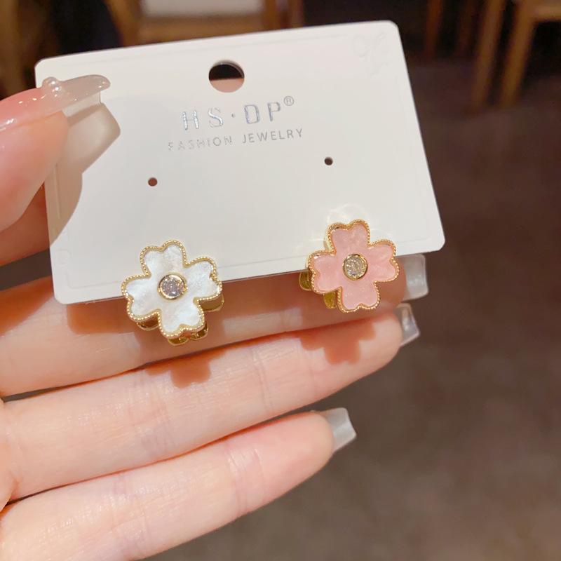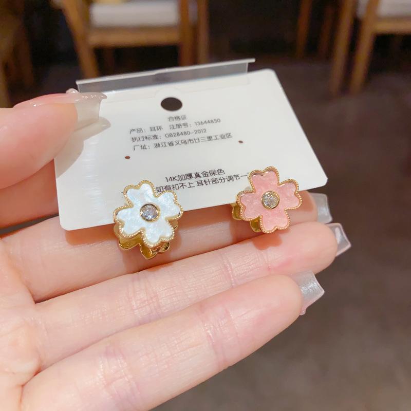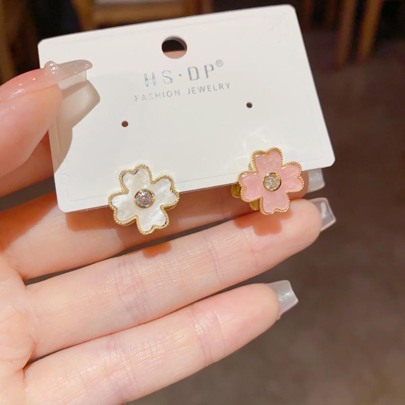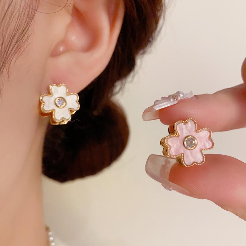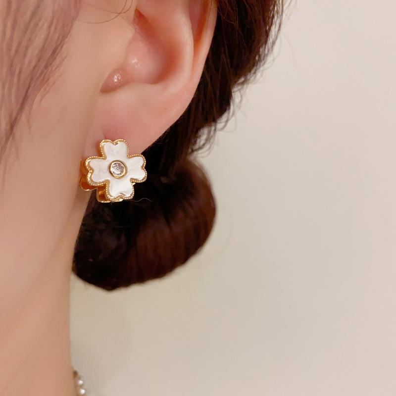 White powder-double-sided four-leaf ear buckle (thick gold plating)