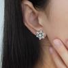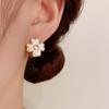 Black and white-double-sided four-leaf flower ear buckle (thick gold plating), White powder-double-sided four-...
