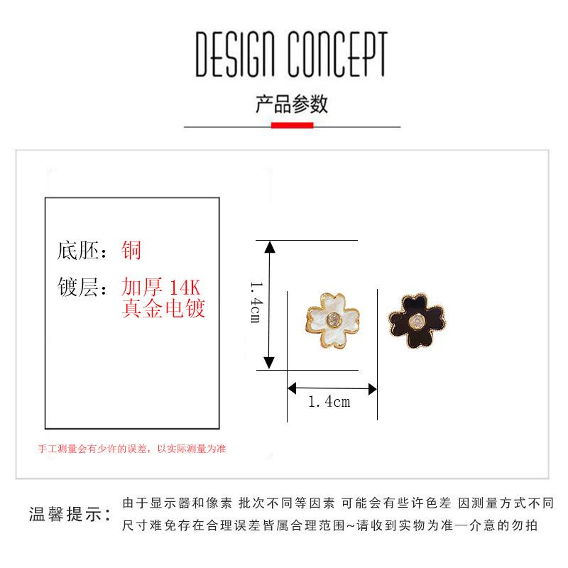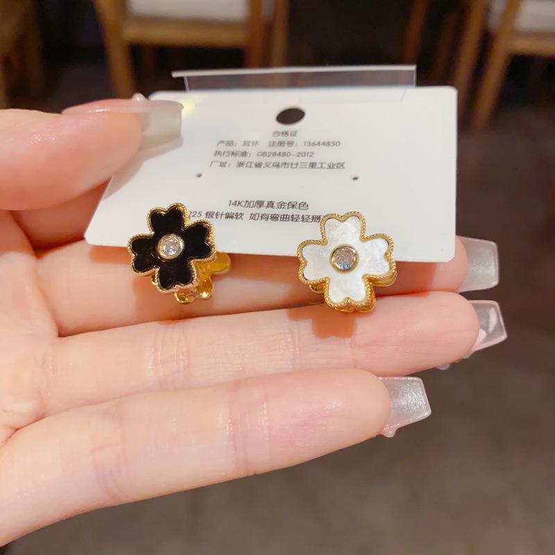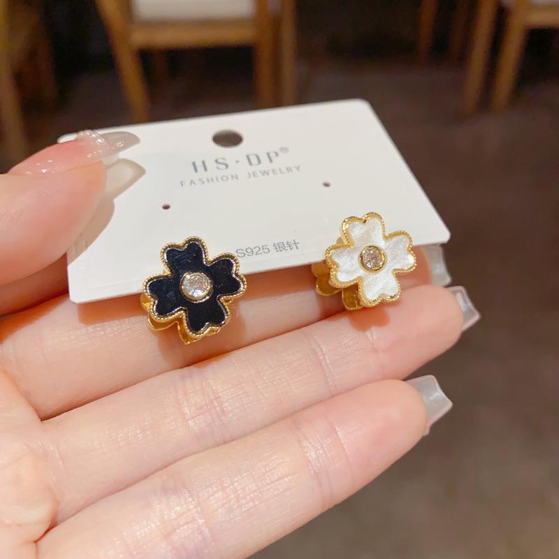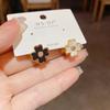 Black and white-double-sided four-leaf flower ear buckle (thick gold plating)