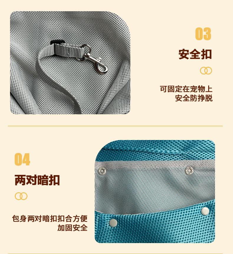 2. La bolsa tiene un bolsillo pequeño, que es conveniente para guardar teléfonos móviles o bocadillos para mascotas. Adecuado para mascotas de menos de 15 libras.
