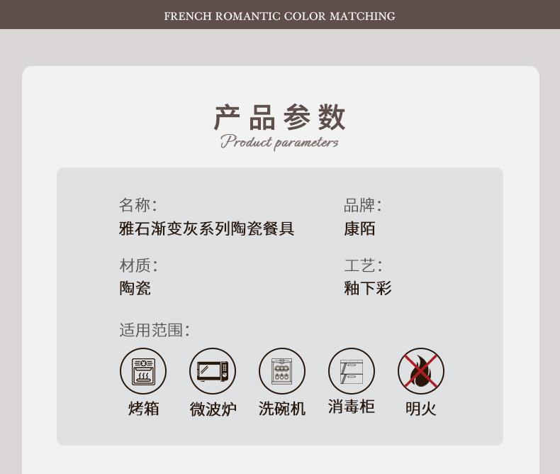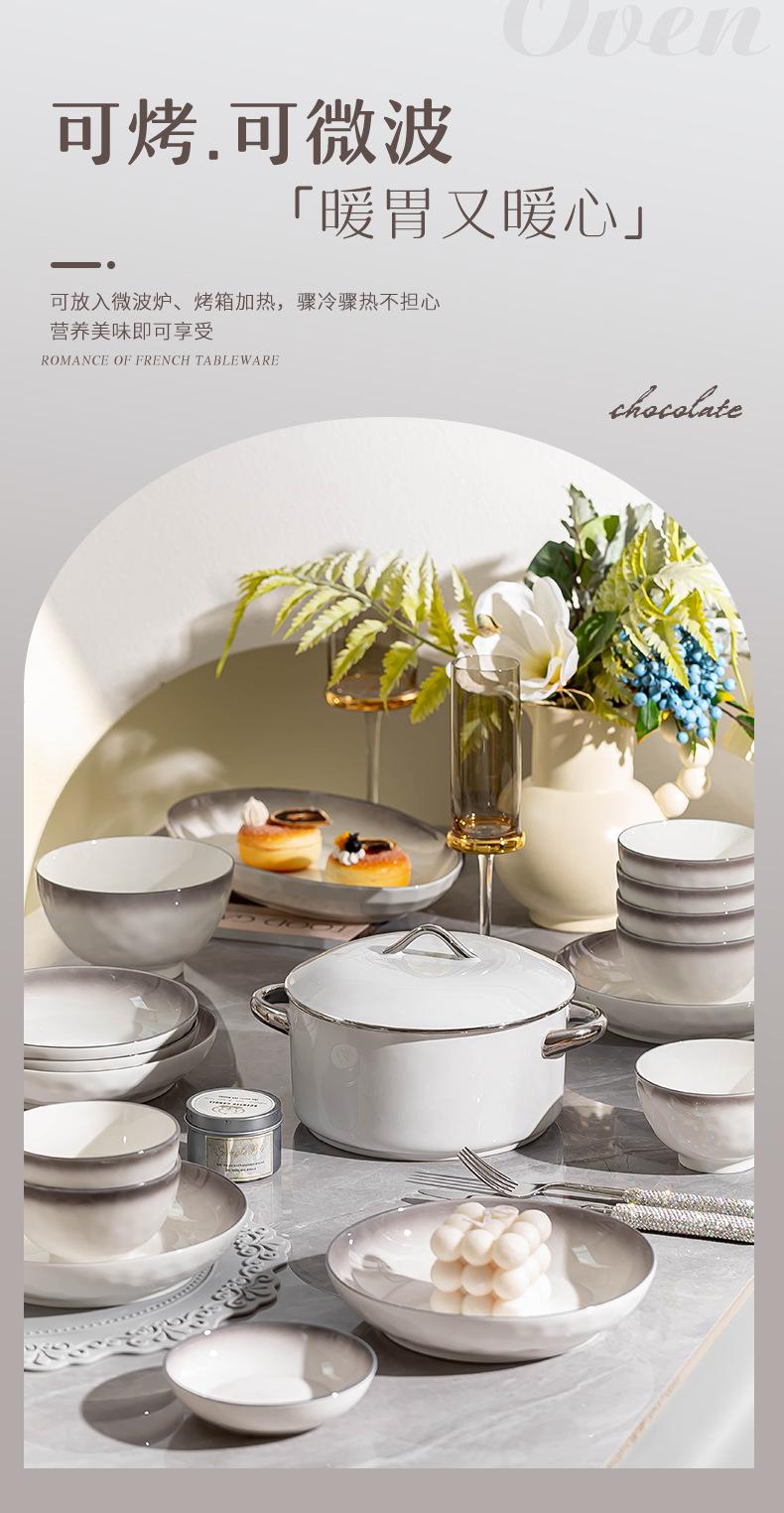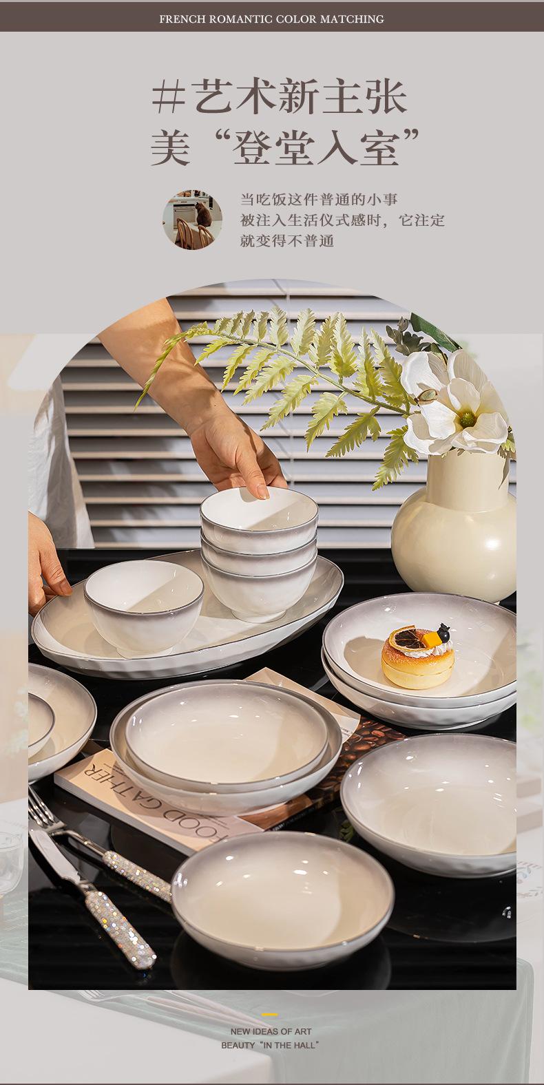 Platos de cerámica adecuados para el hogar, tazón de arroz gris degradado de estilo Ins grueso, combinación de platos, juego completo, venta al por mayor, sentido premium