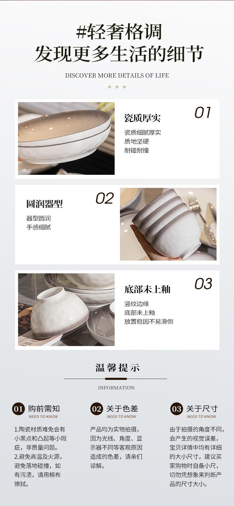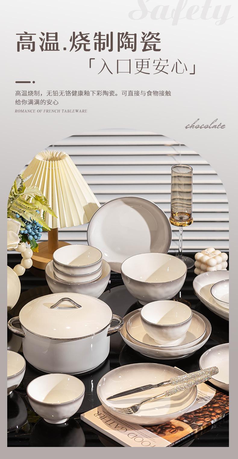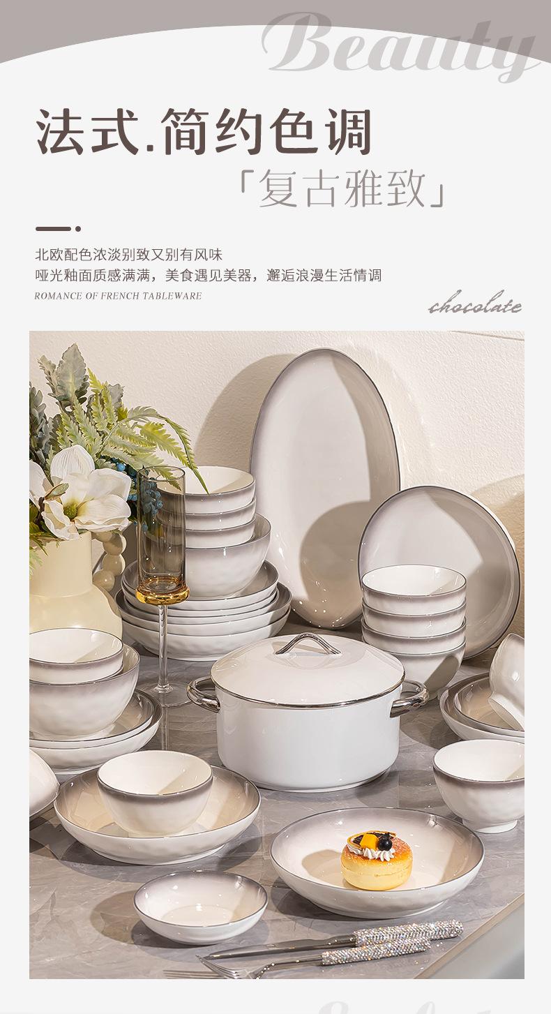 Platos de cerámica adecuados para el hogar, tazón de arroz gris degradado de estilo Ins grueso, combinación de platos, juego completo, venta al por mayor, sentido premium