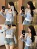 Camisa de manga larga con volantes de verano y otoño 2024, diseño moderno y elegante, informal, combinable, ideal para viajar a Europa y América.