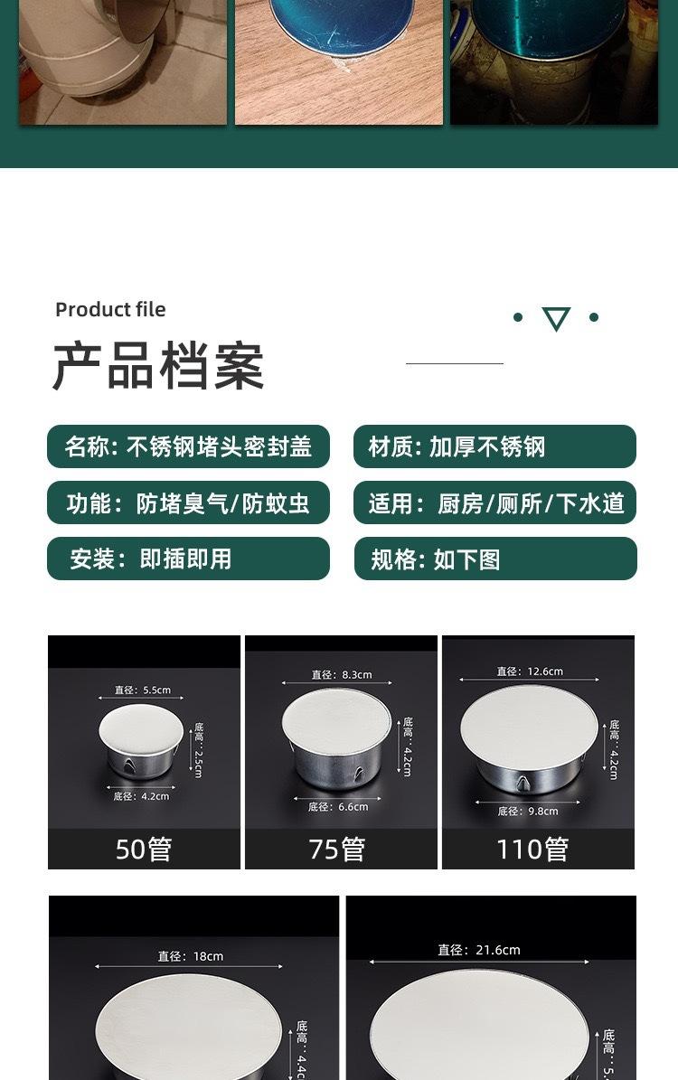 Tapón interior de acero inoxidable 50PVC, tapón de tubería 75, tapa de sellado de tubería 110, tapa decorativa, tapa de tapón de alcantarillado, tapa de sellado