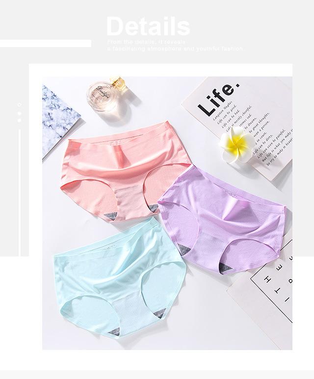 Braguitas de Malla de Seda de Hielo Sin Costuras Transpirables para Mujer, Calzoncillos de Talla Grande Adhesivos de Alta Elasticidad de Secado Rápido, Estilo Femenino