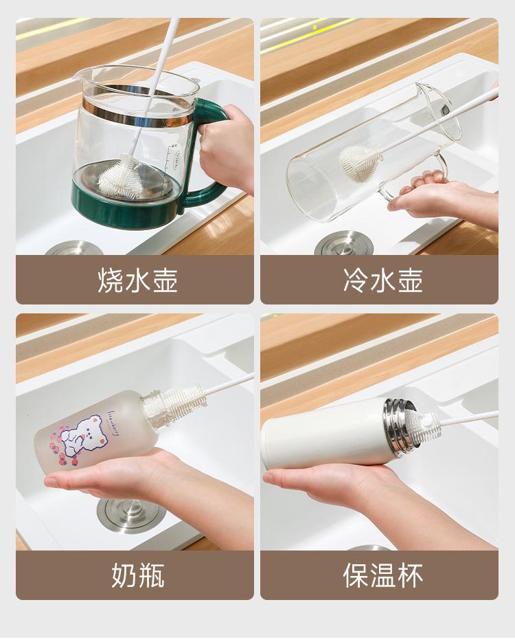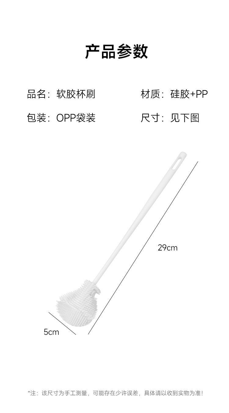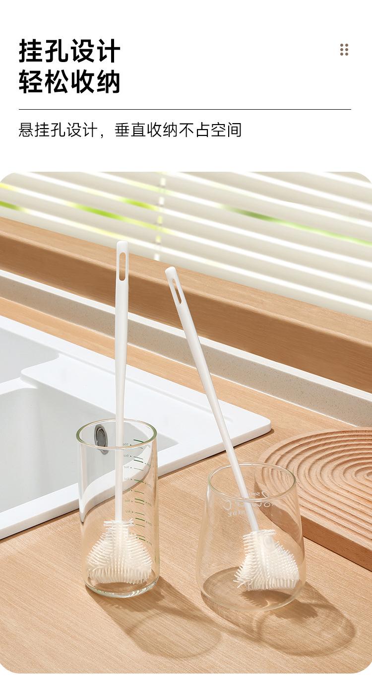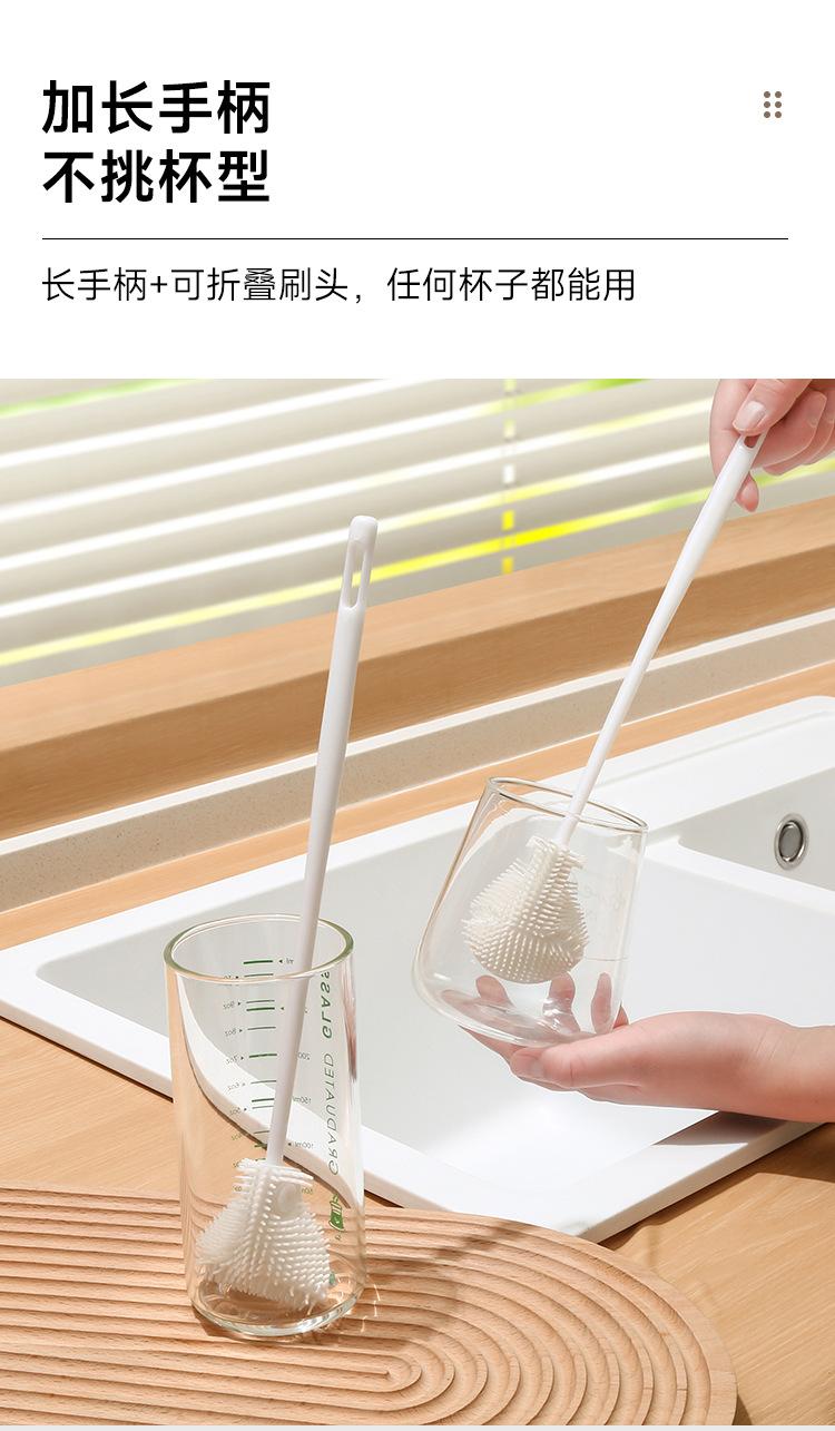 Nombre del producto: Cepillo para taza de mango largo Material del producto: silicona + PP Embalaje del producto: embolsado Peso del producto: 21 g SKU: 4757 Cantidad por embalaje: 400 Tamaño de la caja: 50*40*40