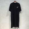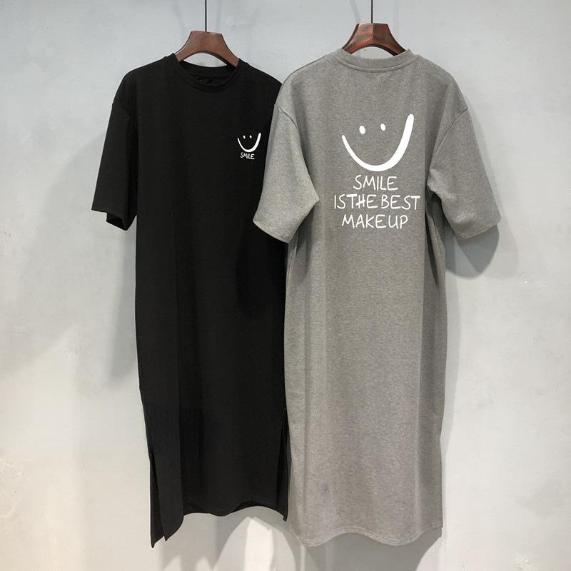 2025 Verano Nuevo Versátil Manga Corta Suelto Estilo Coreano Estampado Abertura Vestido Camiseta Midi para Mujer Trendy