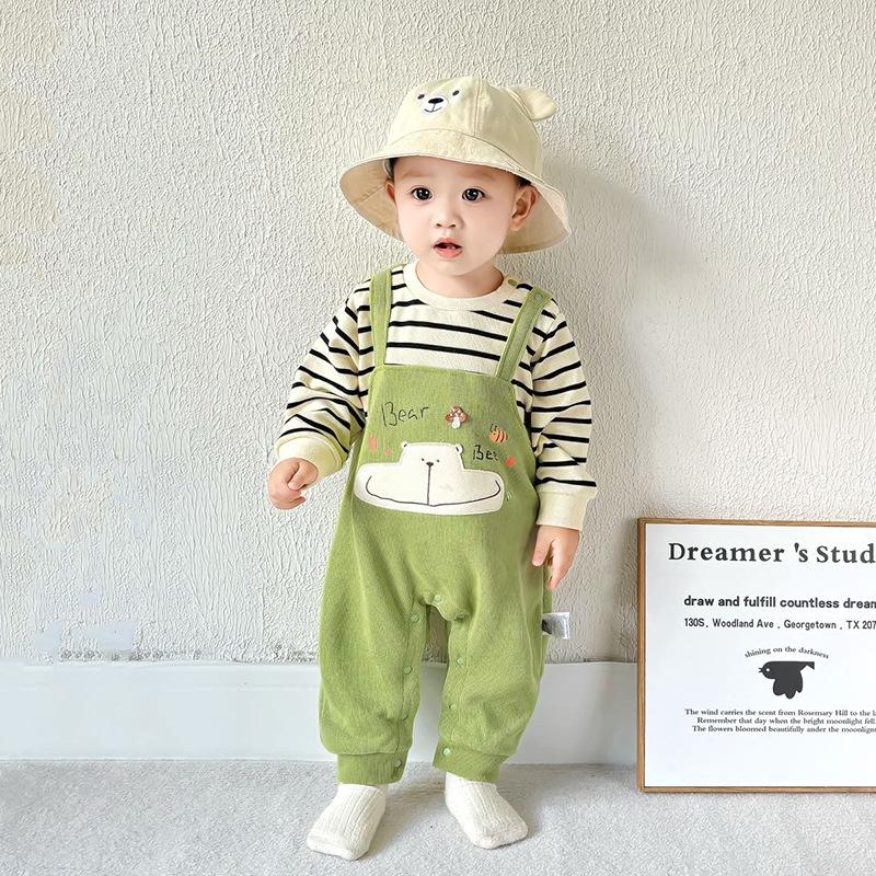 Mono de bebé, ropa de otoño para recién nacidos, boca grande, oso falso, ropa de bebé de dos piezas, ropa de bebé de primavera y otoño