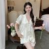 Pijama Francés para Mujer, Pantalones de Manga Larga, Traje de Satén Estilo Dulce de Princesa, Pijama de Otoño, Ropa para el Hogar, Se Puede Usar Afuera